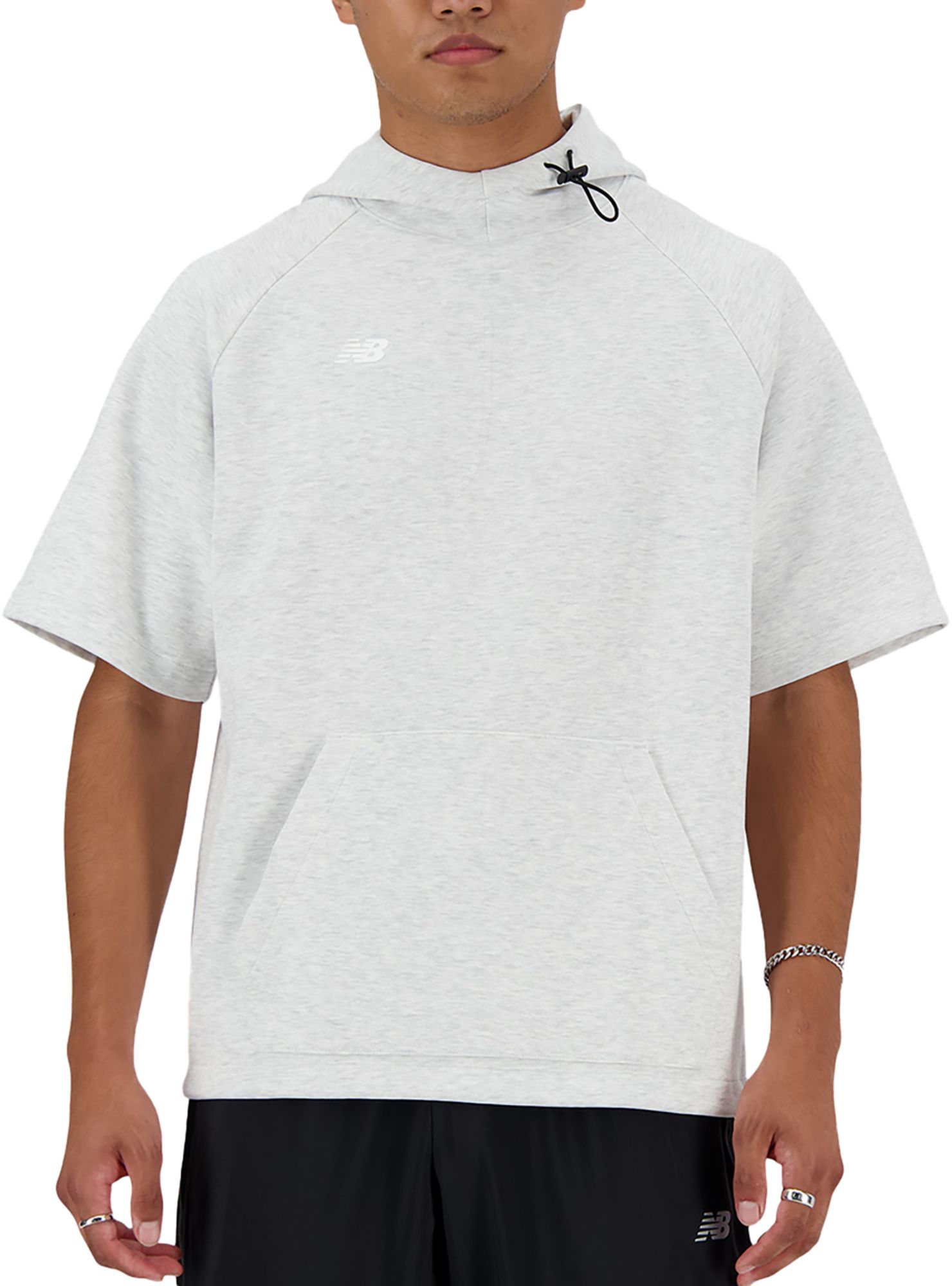 Nice short-sleeved hoodie! I really love the design I gave 5 stars light enough that it's doesn't weigh you down but comfy enough to keep you warm the hoodie stays intact lays down nice and clean without you having to worry about adjusting it I love the drawstring on the bottom it allows you to adjust to your liking I wasn't sure about the 2x so I ordered a size up and because of the drawstring on the bottom it helps me adjust to my size which I think is a plus and a nice touch, I own the black one I'm ready to purchase another one shortly nice job on this one New Balance!