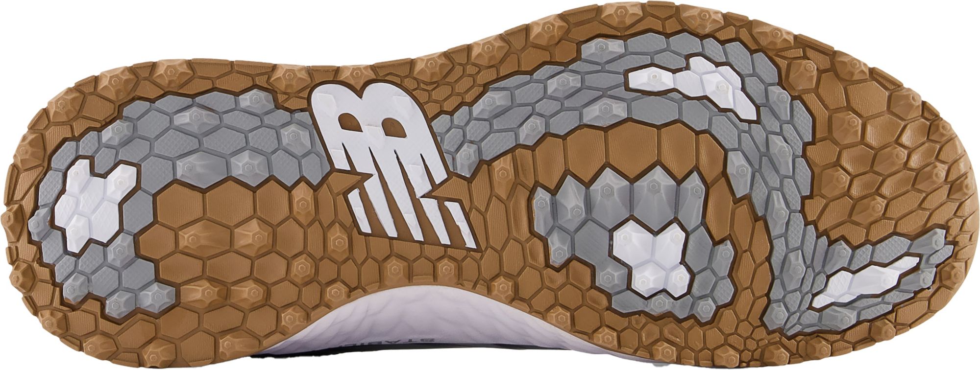 Smart rubber spikeless outsole has pressure mapping colors to highlight key performancezones