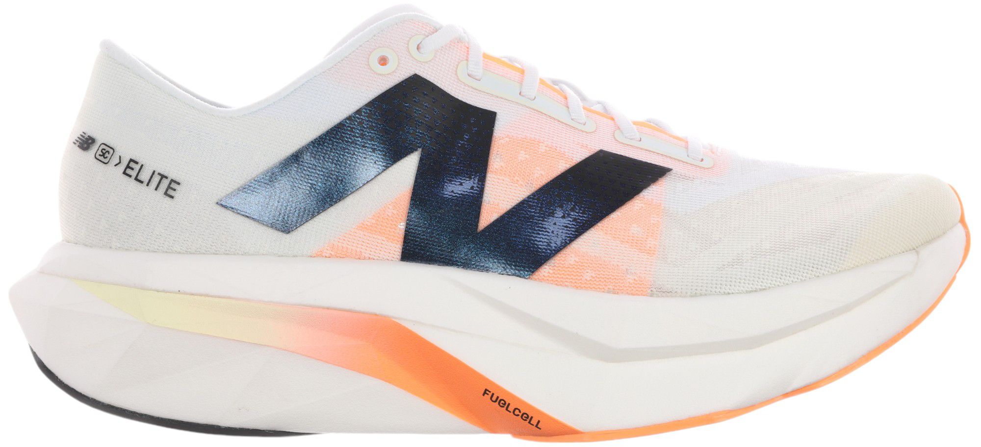 The FuelCell SC Elite v4 is a race day shoe designed for the moments when seconds really do count. The propulsive feeling of FuelCell is combined with a thinner carbon fiber plate, offering superior energy return in a lightweight package.
