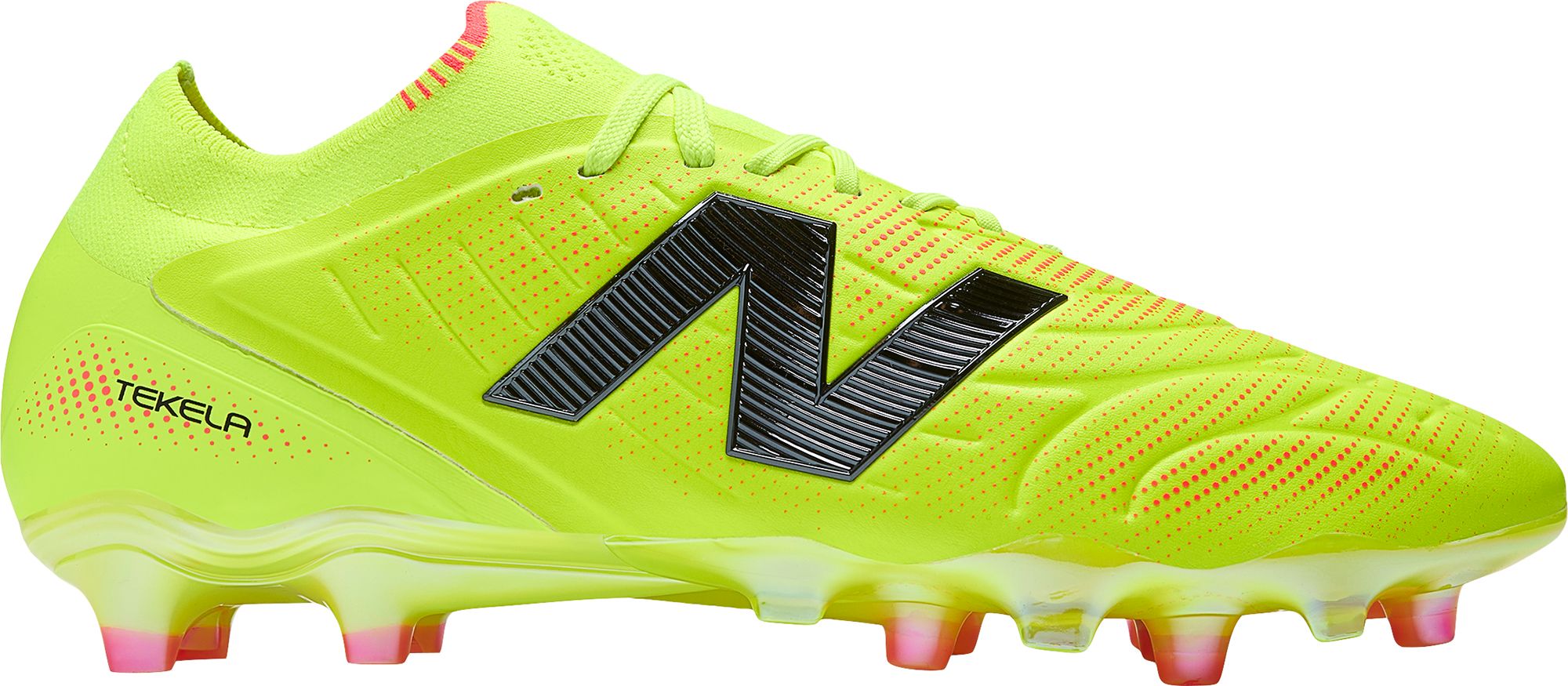 The new Tekela v5 offers a dynamic, precise sense of touch, for the players who control the game with their vision and technique. A lightweight microfiber upper features strategically placed debossed channels and printed grip details for an intuitive boot to ball feel. A one-piece knit collar contours around the ankle, for a natural feeling lockdown fit. A nylon outsole featuring a conical stud configuration and TPU angled rim studs at the forefoot is built for 360-degree traction.