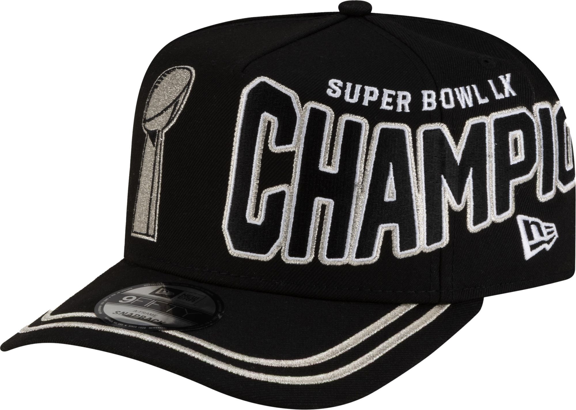 • Embroidered team logo and 2025-26 Super Bowl LX Champions graphics