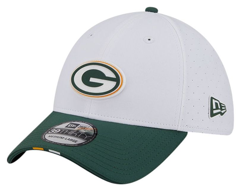 New Era Adult Green Bay Packers Training Camp 2025 White 39Thirty Stretch Fit Hat