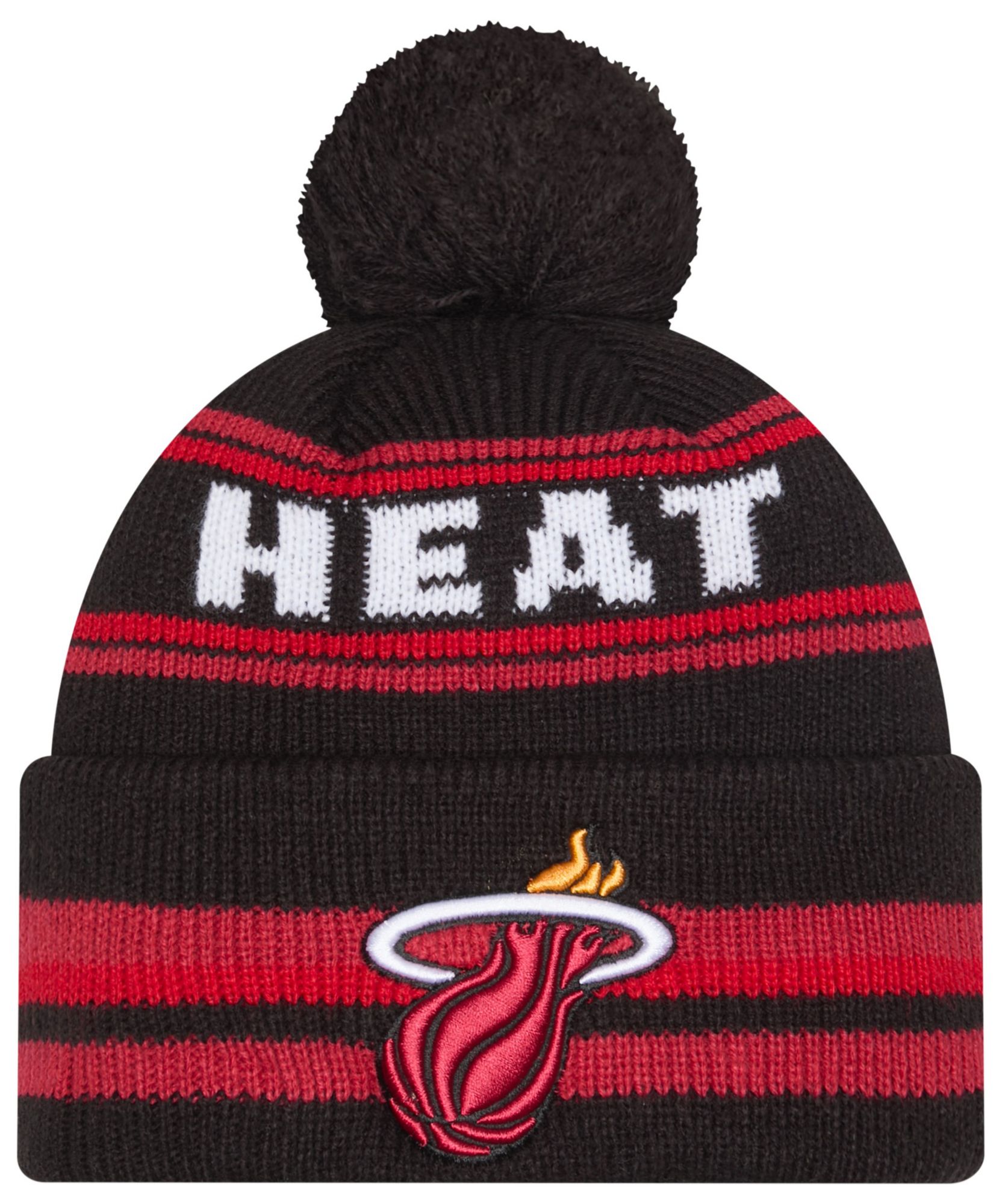 New Era Adult Miami Heat Black Classic Pom Cuffed Knit Beanie
