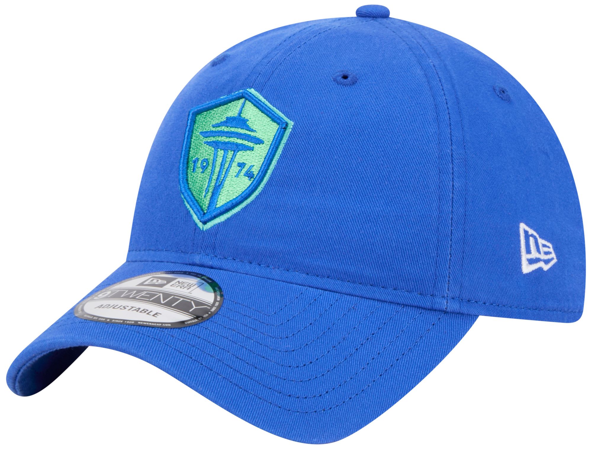 New Era Adult Seattle Sounders Bright Blue Logo Slouch 9Twenty Adjustable Hat