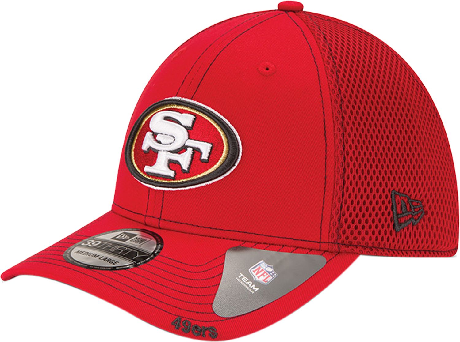Stand out in the crowd when you rock the New Era® 49ers Neoflex Red Hat. With a unique approach to design, this stretch fit hat features an embroidered team logo positioned on the front. An all-over mesh design on the four back panels add flair, while a team wordmark embroidered on the left bill shows off your San Francisco pride. Declare your team spirit all season long in this New Era® cap.