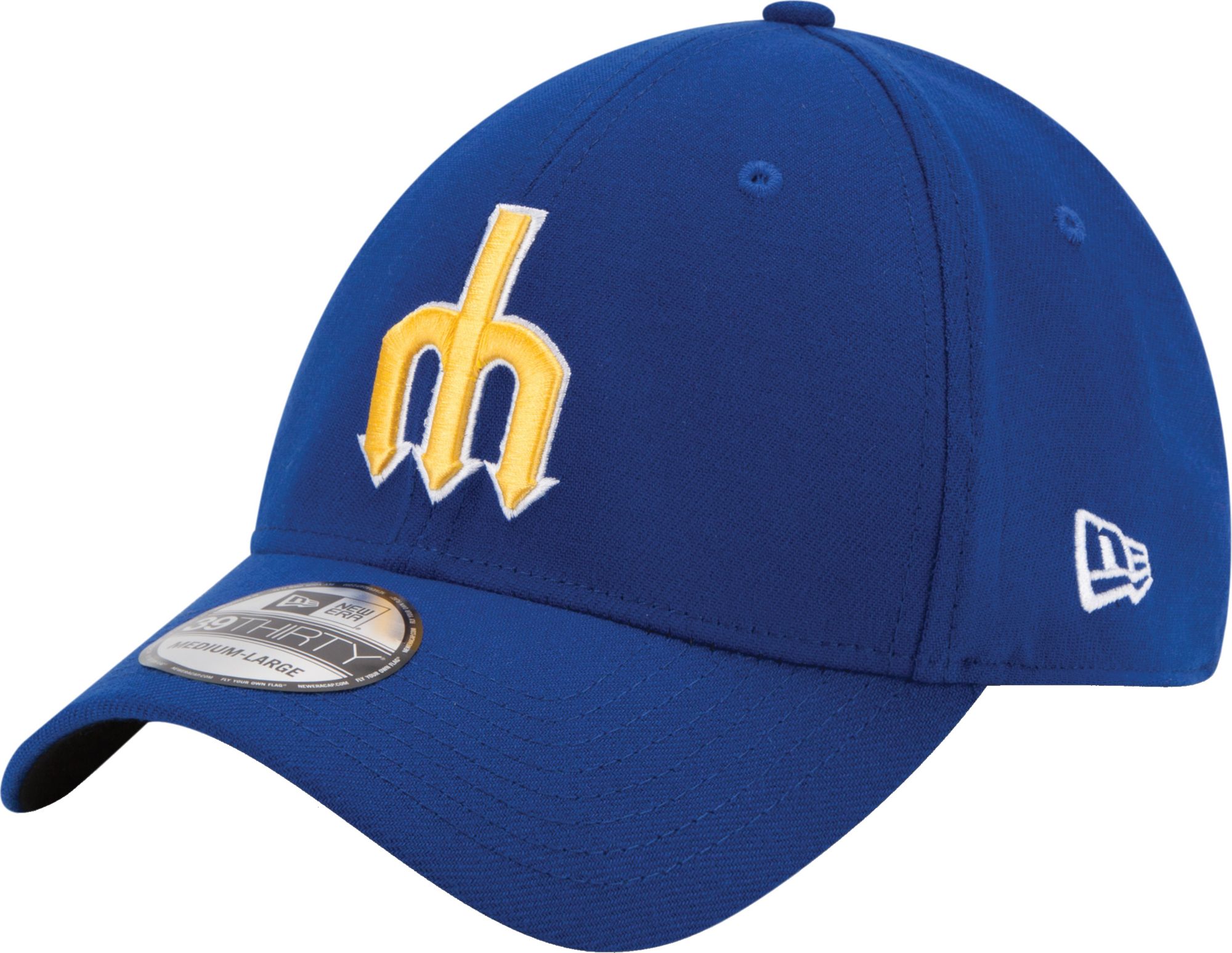 Step up to bat like the pros in the New Era® Seattle Mariners Cooperstown 39Thirty® fitted cap. The embroidered throwback Mariners logo displays your loyalty to your favorite team, while the stretch fit design allows you to stay comfortable during every inning. The moisture-absorbing sweatband keeps you cool and the sweat off your face during those blistering summer days and one-run games.