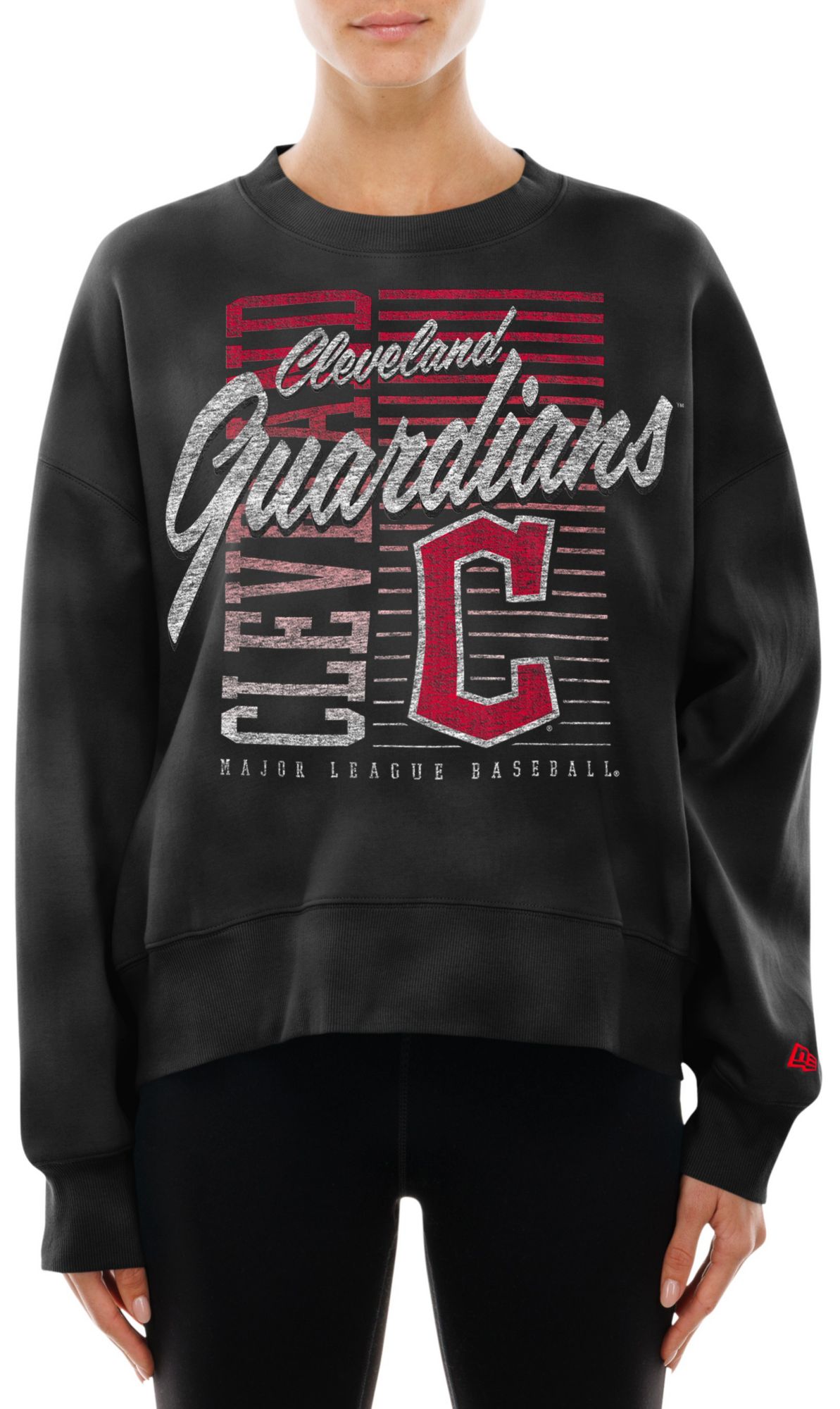 New Era Women's Cleveland Guardians Black Throwback Enzyme Crew Pullover Sweatshirt