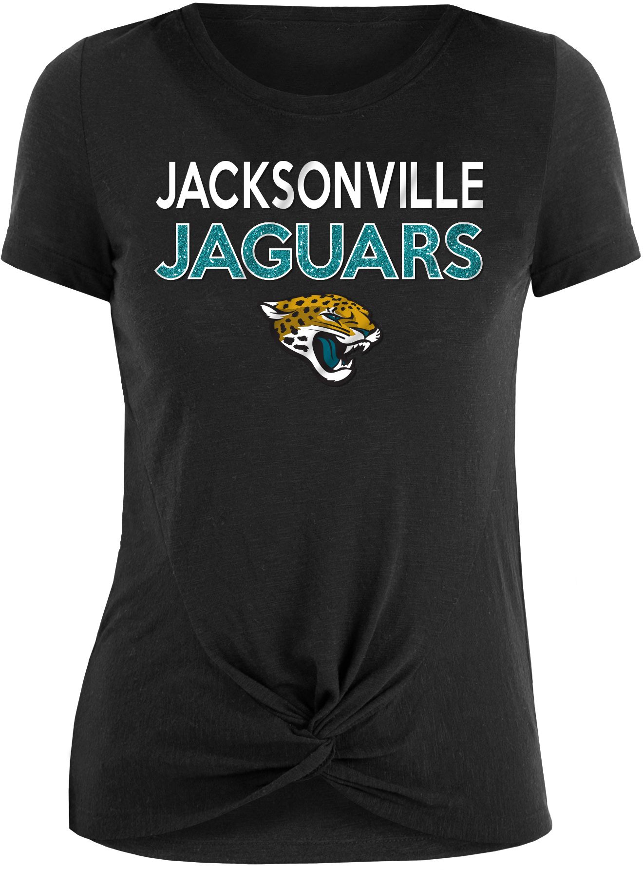 New Era Women's Jacksonville Jaguars Glitter Knot Front Black T-Shirt