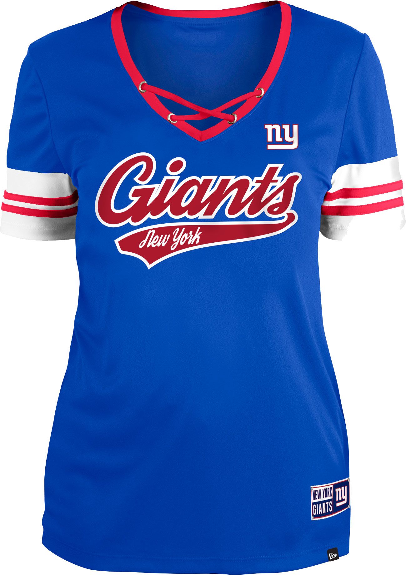 New Era Women's New York Giants Blue Lace-Up V-Neck T-Shirt