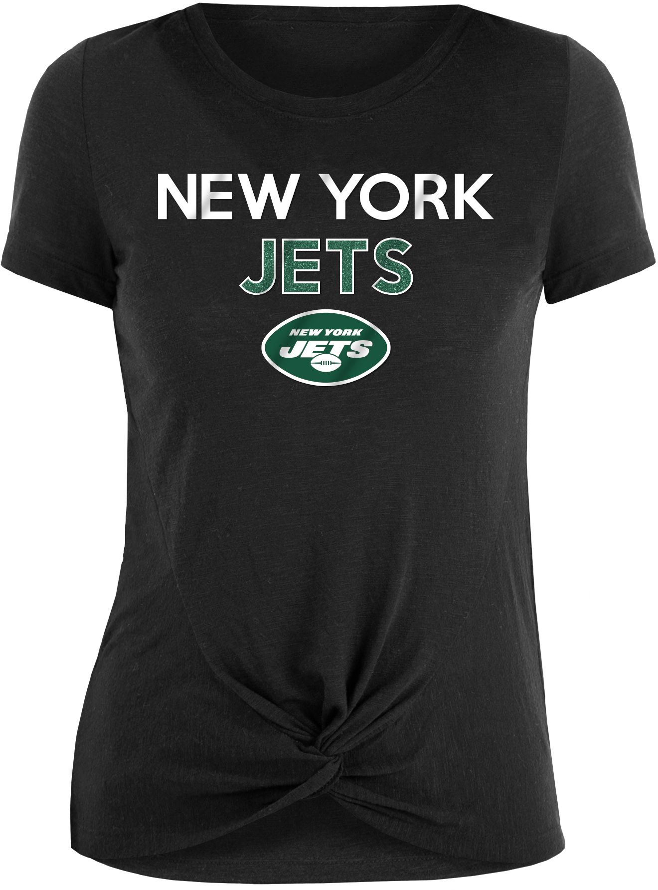 New Era Women's New York Jets Glitter Knot Front Black T-Shirt