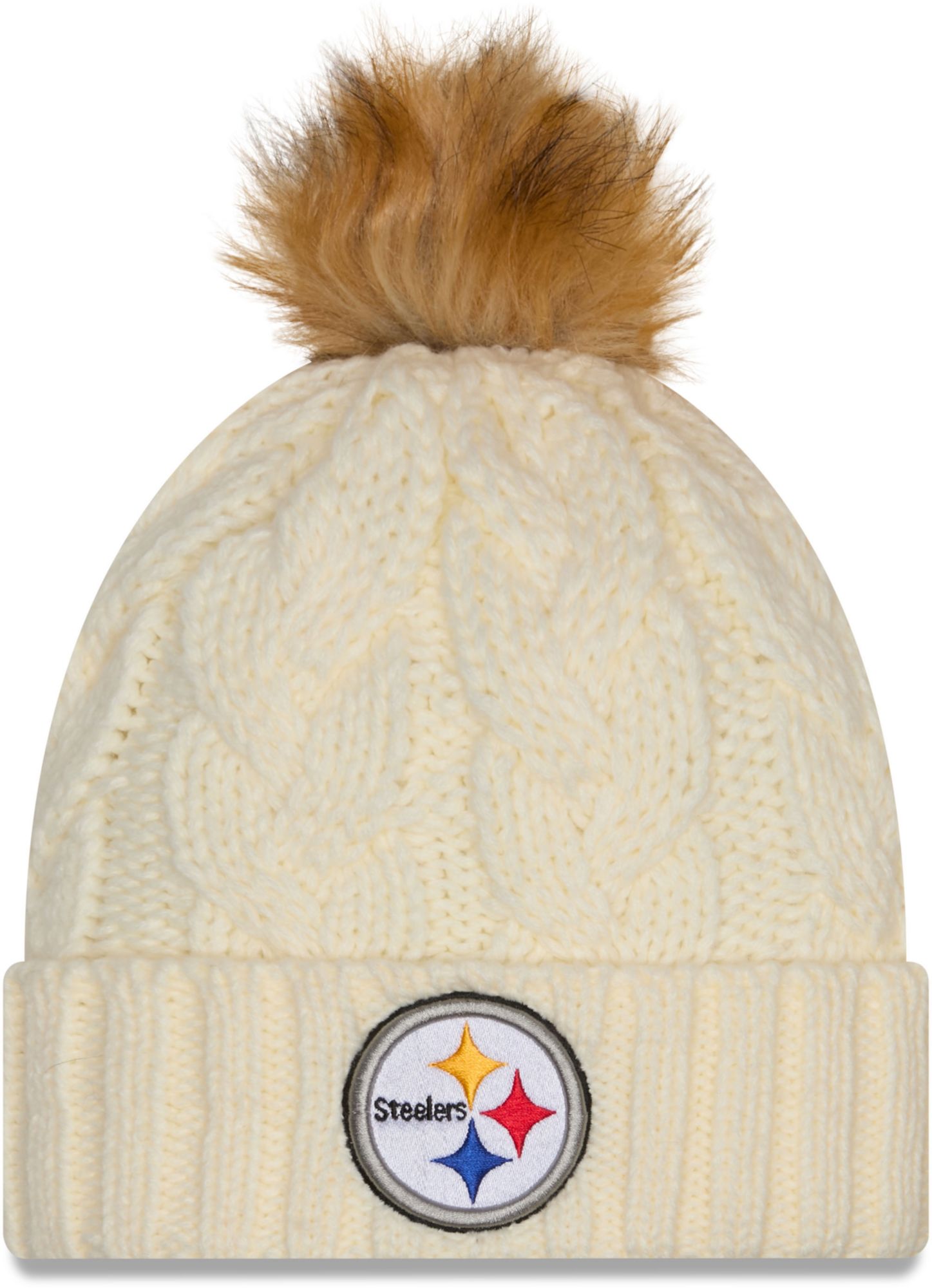 New Era Women's Pittsburgh Steelers White Fur Pom Cuffed Knit Beanie