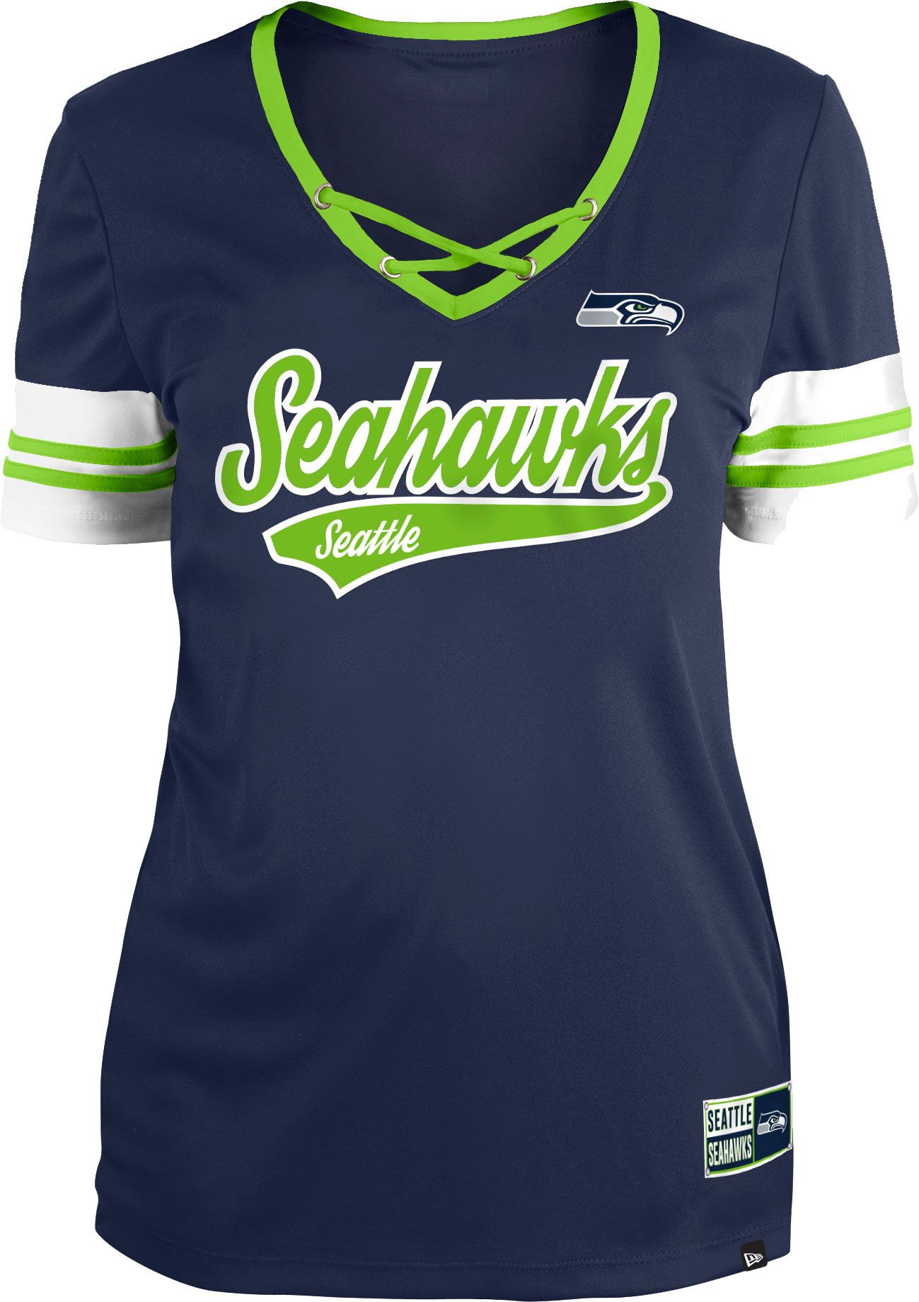 New Era Women's Seattle Seahawks Navy Lace-Up V-Neck T-Shirt