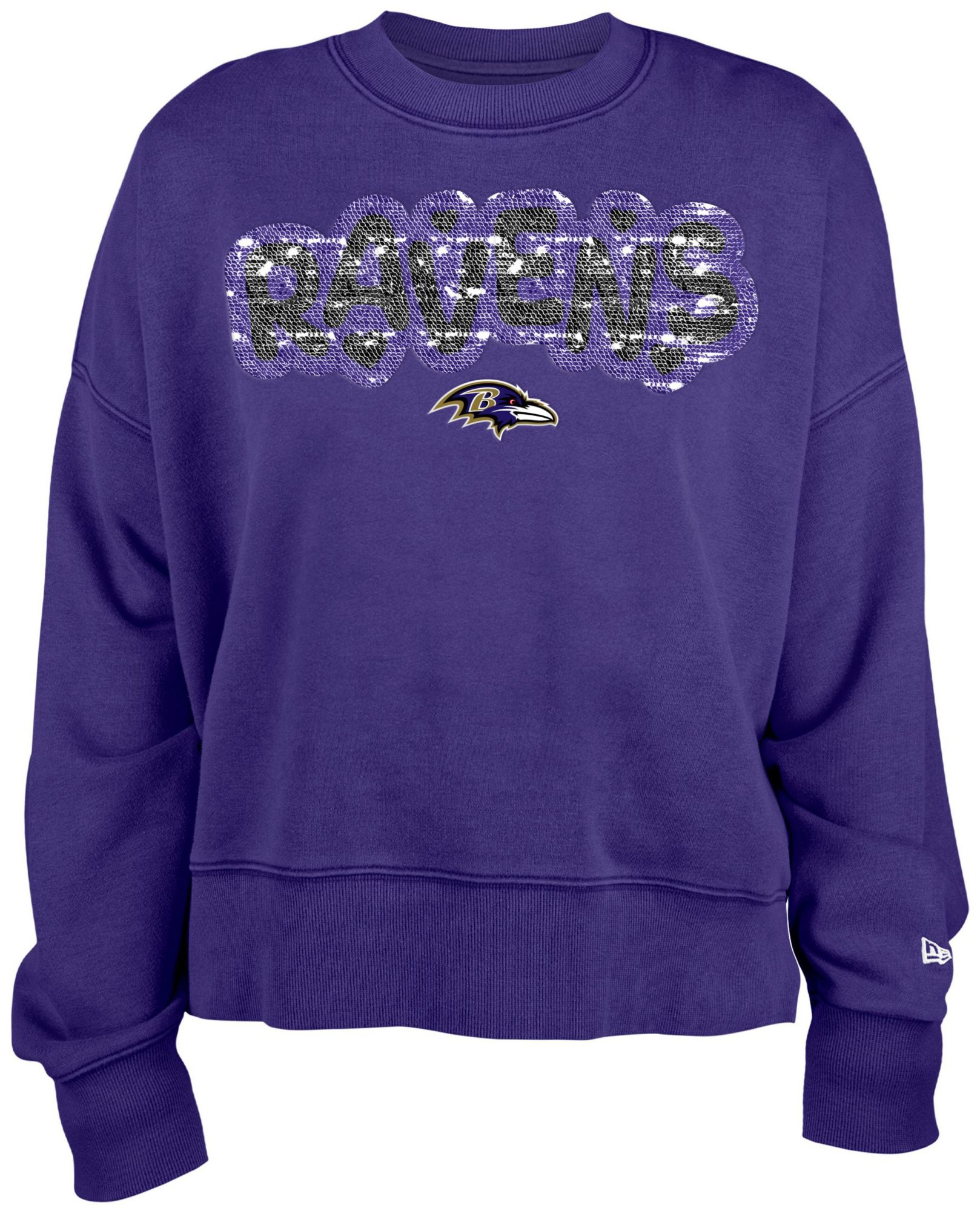 New Era Youth Baltimore Ravens Purple Sequin Flip Crew Pullover Sweatshirt