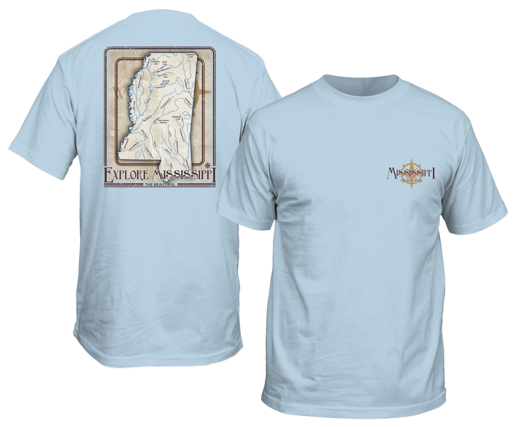 New World Graphics Men's Mississippi Light Blue Waters T-Shirt