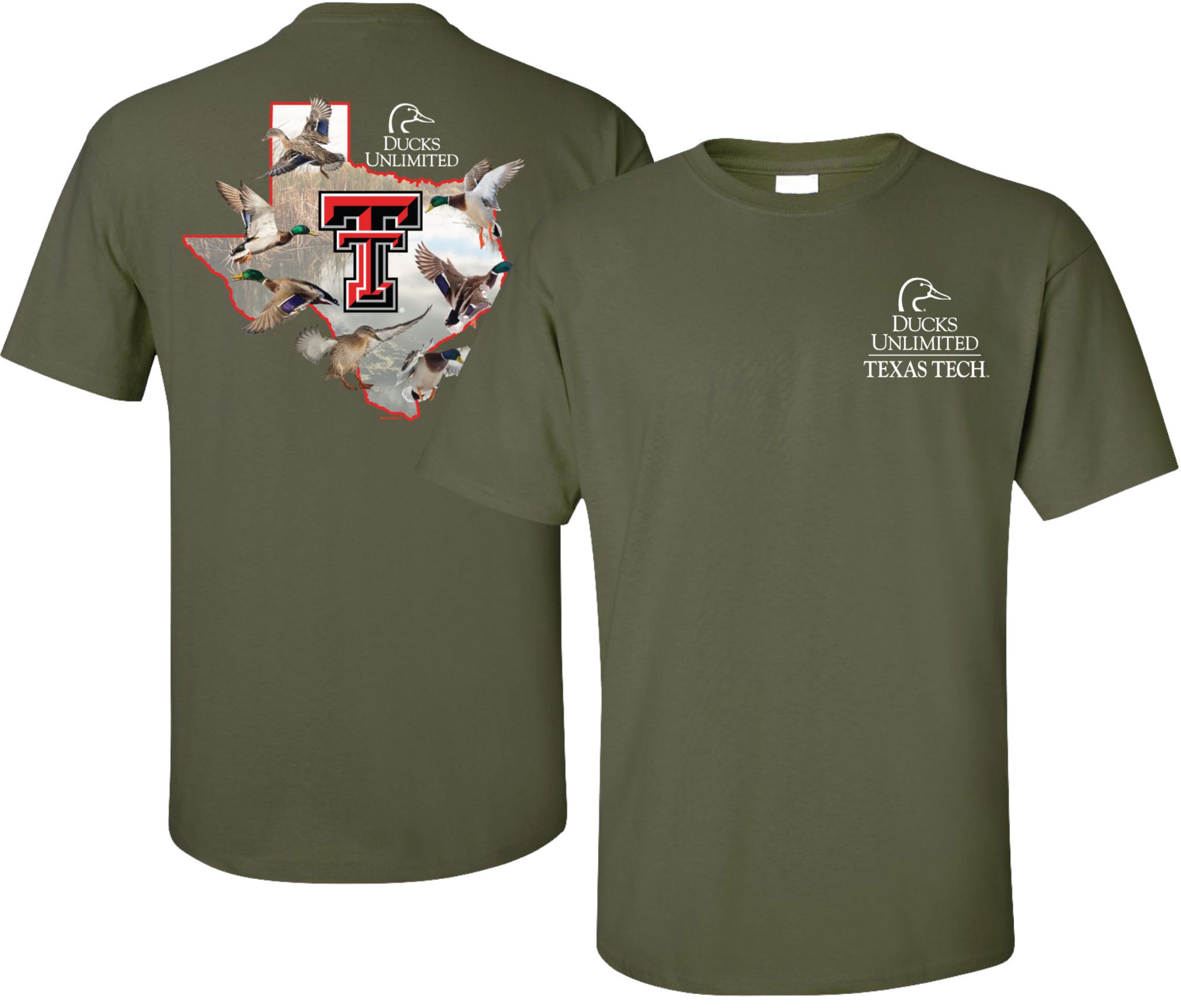 New World Graphics Men's Texas Tech Red Raiders Green Ducks Unlimited Graphic T-Shirt