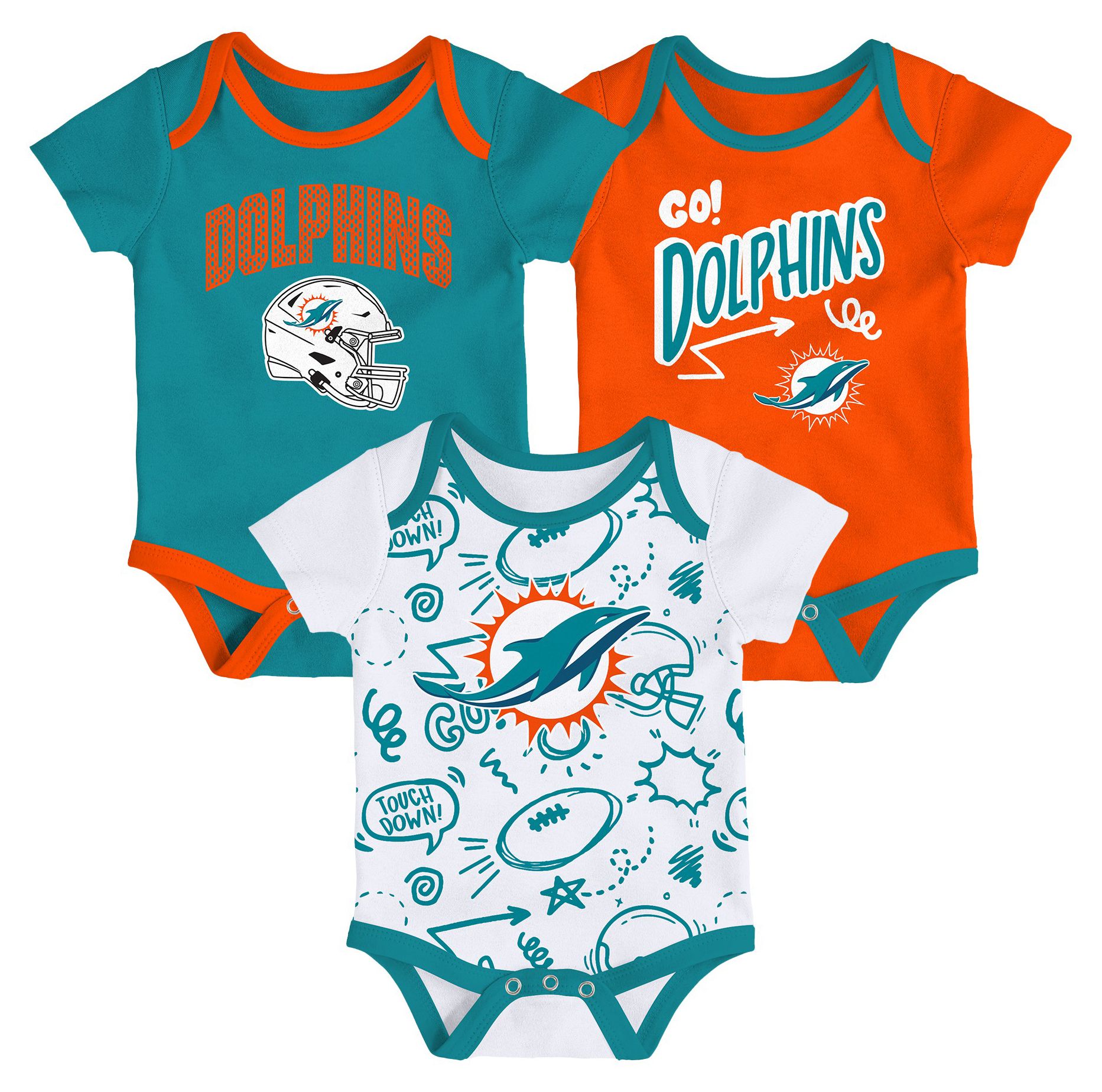 NFL Team Apparel Infant Miami Dolphins Aqua Newborn All Day Play 3-Pack Creeper Set