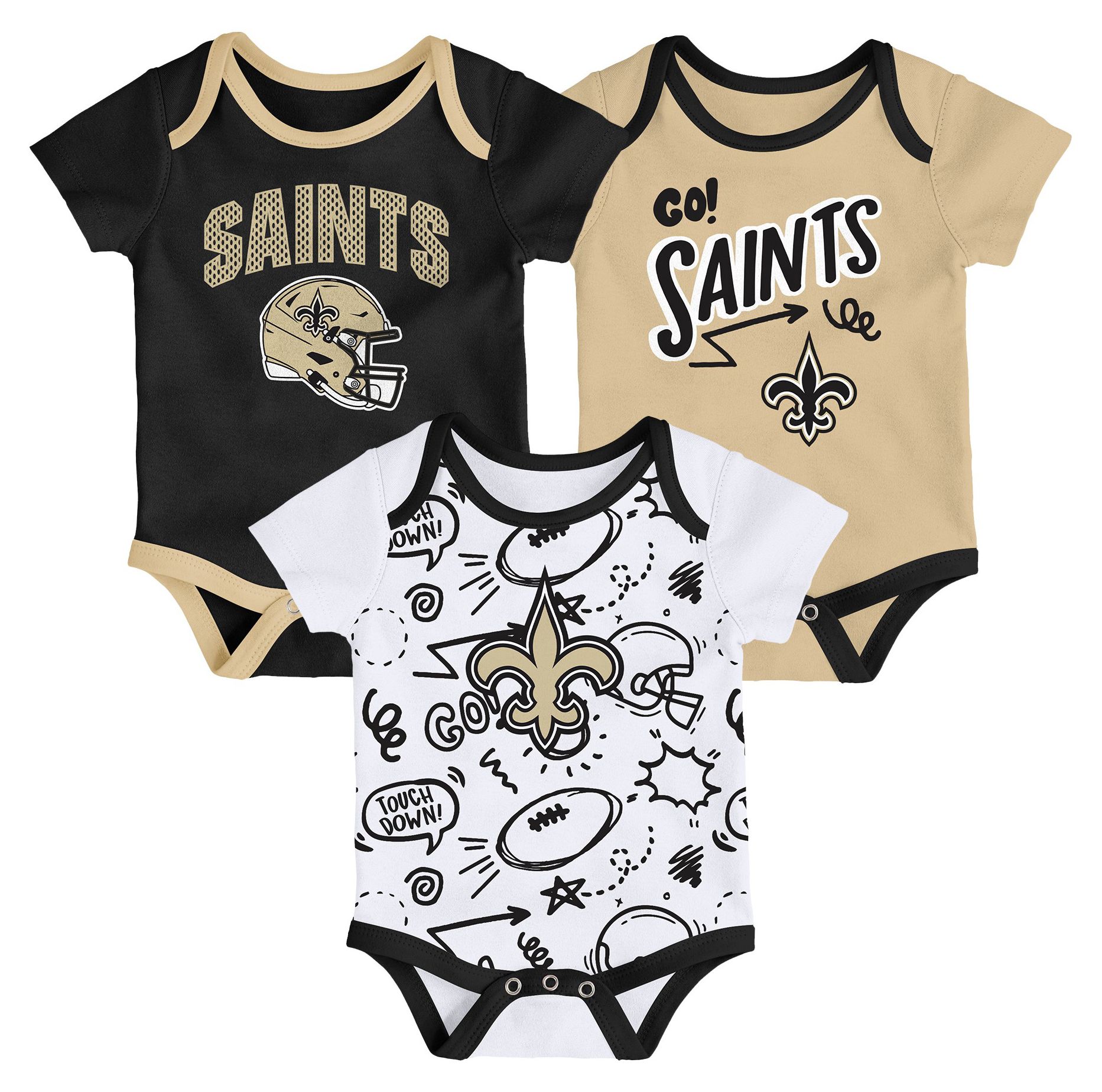 NFL Team Apparel Infant New Orleans Saints Black Newborn All Day Play 3-Pack Creeper Set