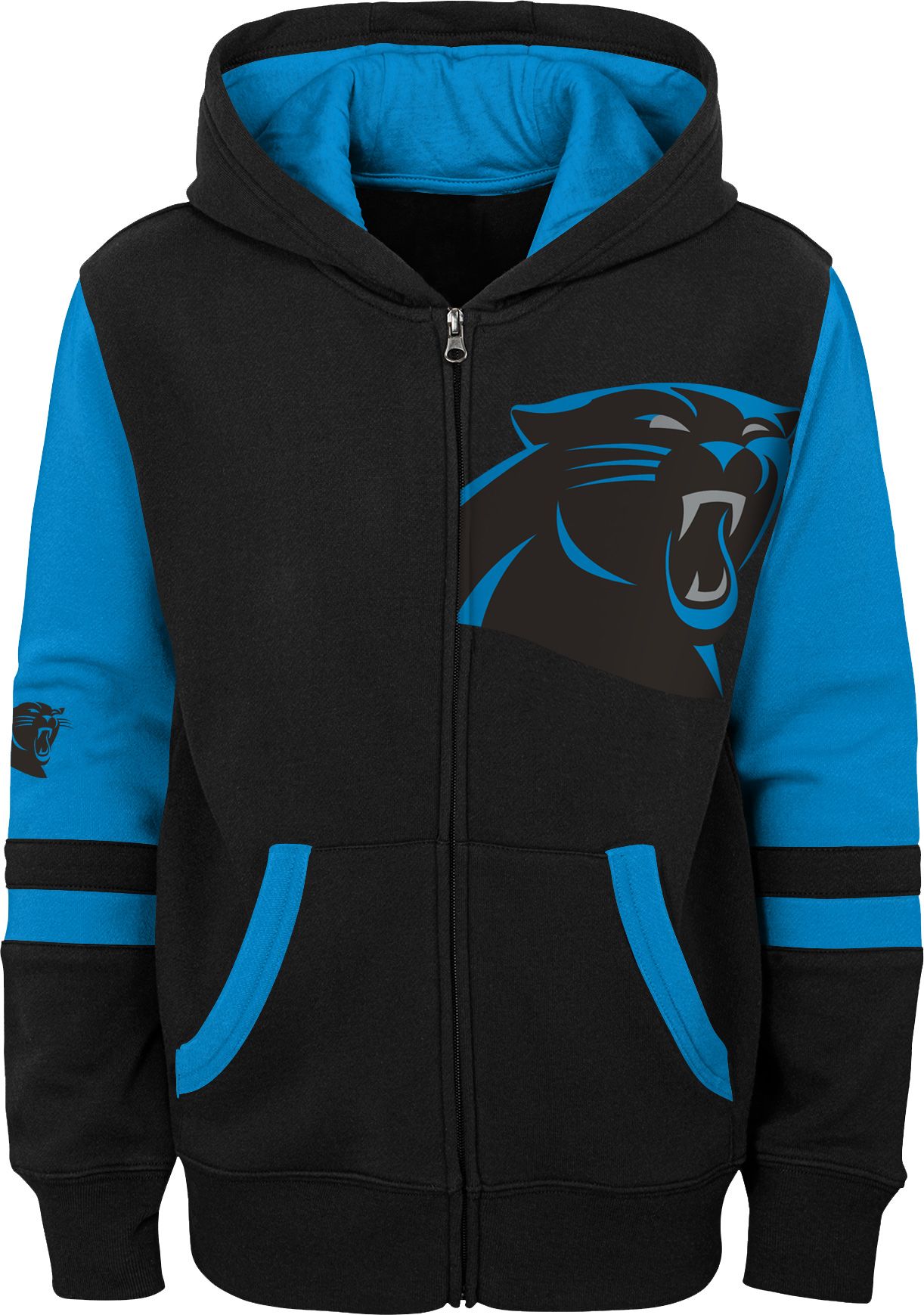 NFL Team Apparel Youth Carolina Panthers Color Block Full-Zip Hoodie