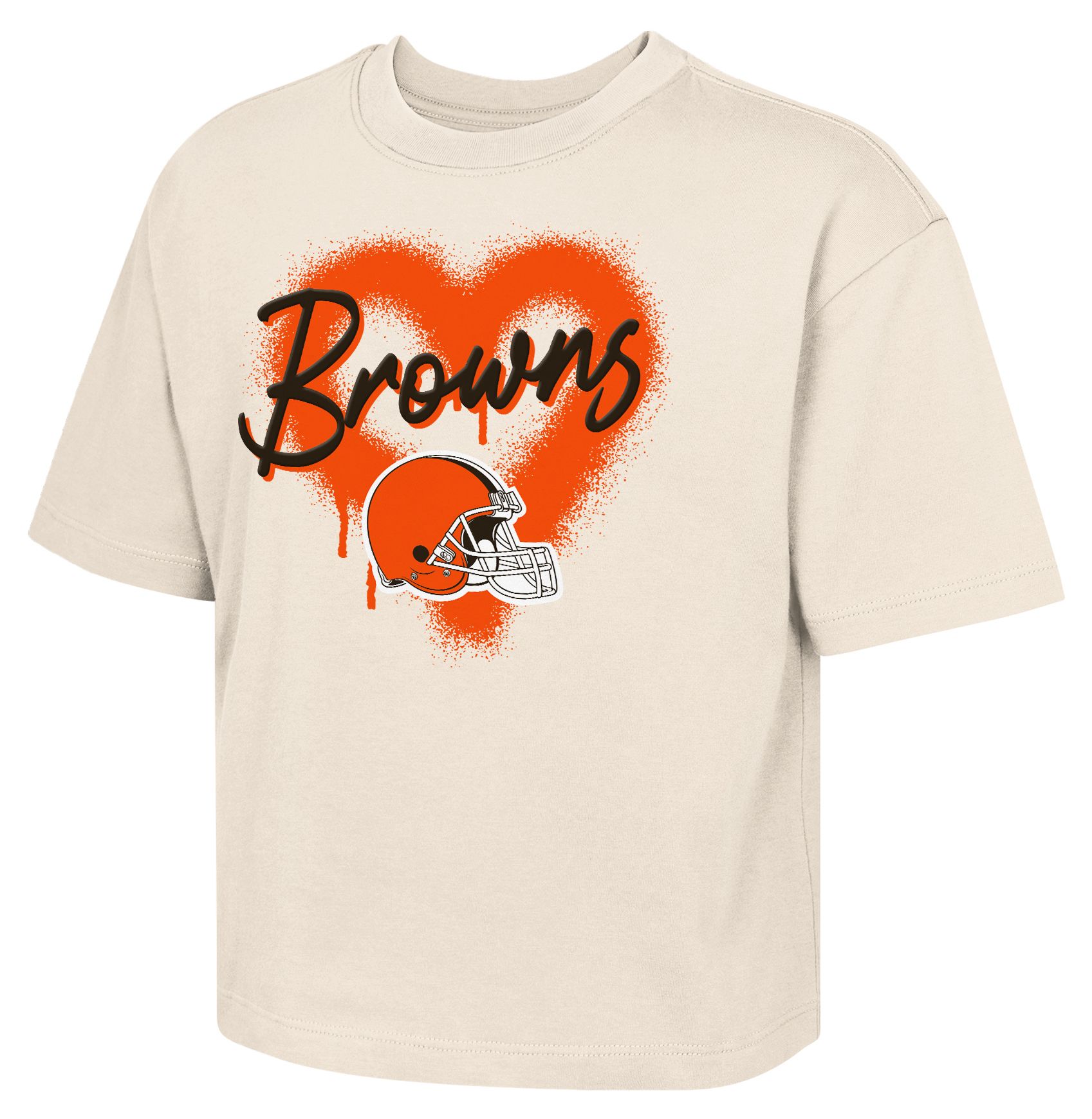 NFL Team Apparel Youth Cleveland Browns Natural Spray Heart Boxy T-Shirt