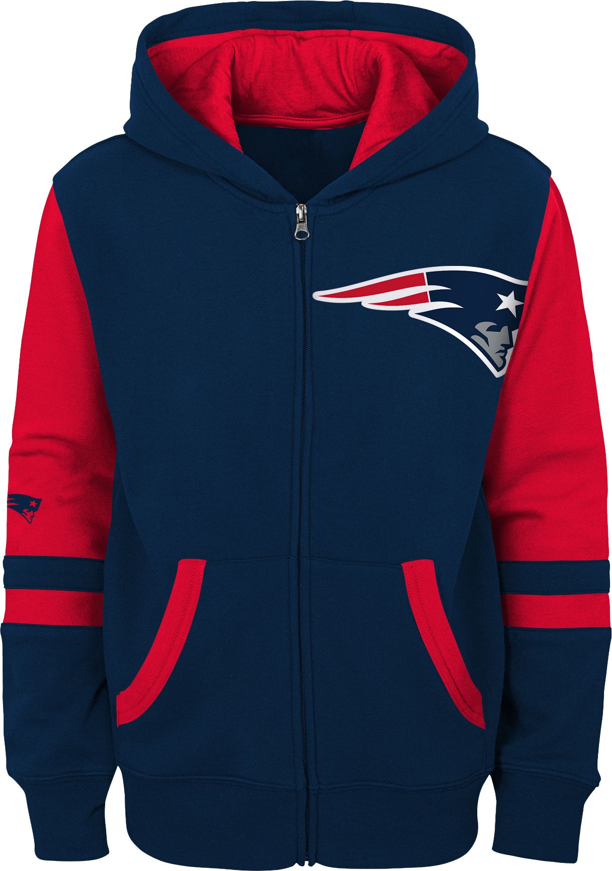 NFL Team Apparel Youth New England Patriots Color Block Full-Zip Hoodie