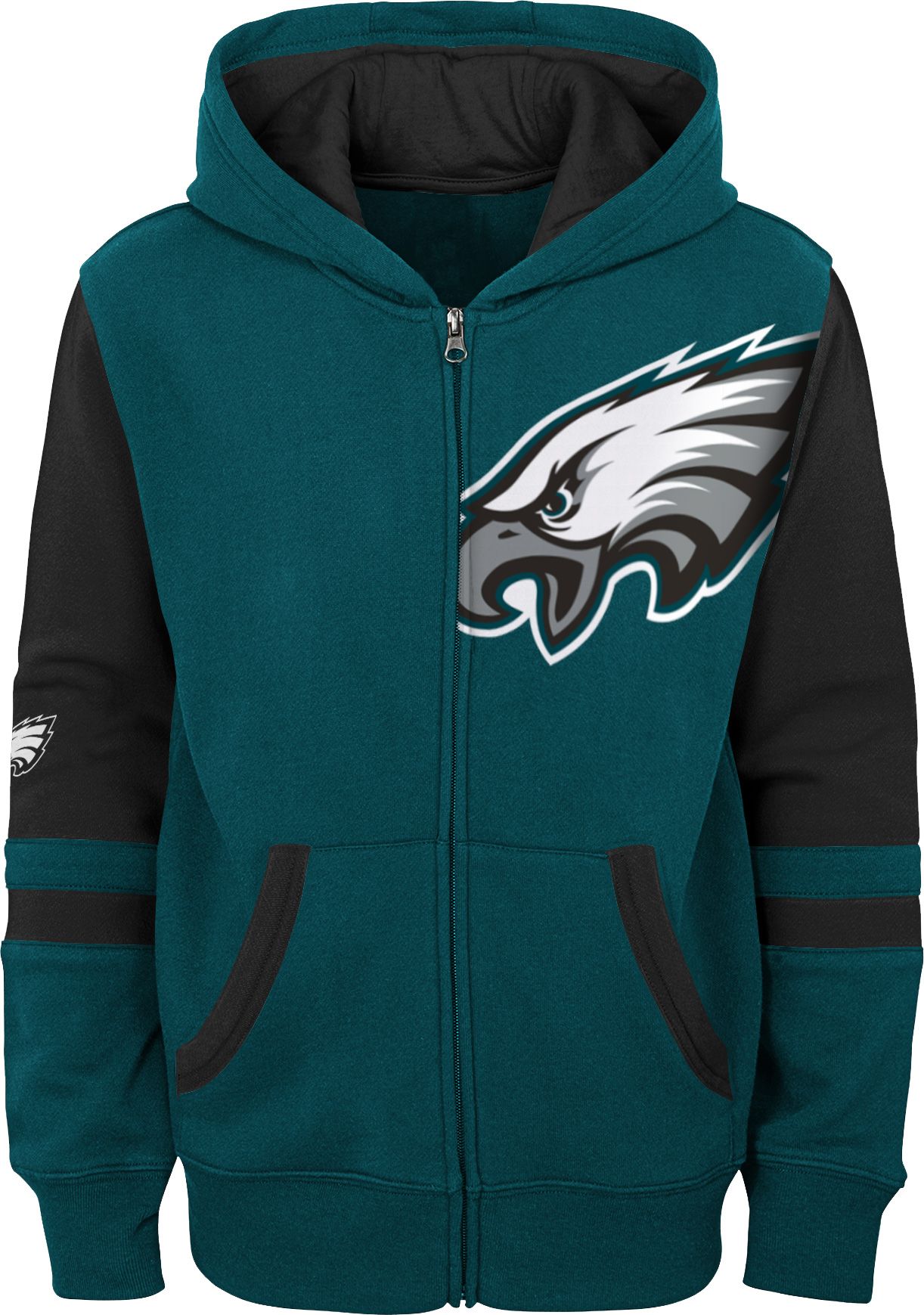NFL Team Apparel Youth Philadelphia Eagles Color Block Full-Zip Hoodie