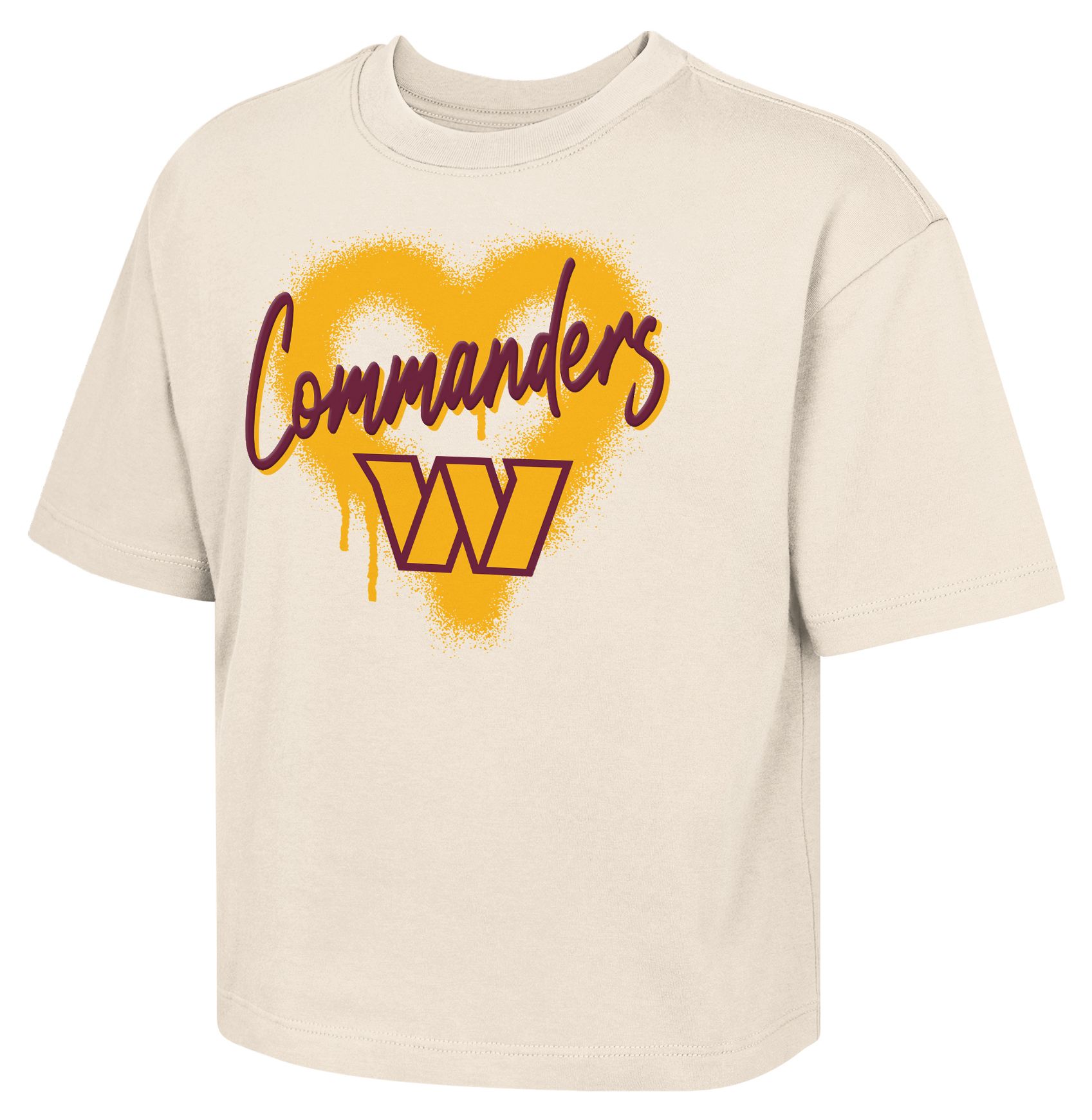 NFL Team Apparel Youth Washington Commanders Natural Spray Heart Boxy T-Shirt
