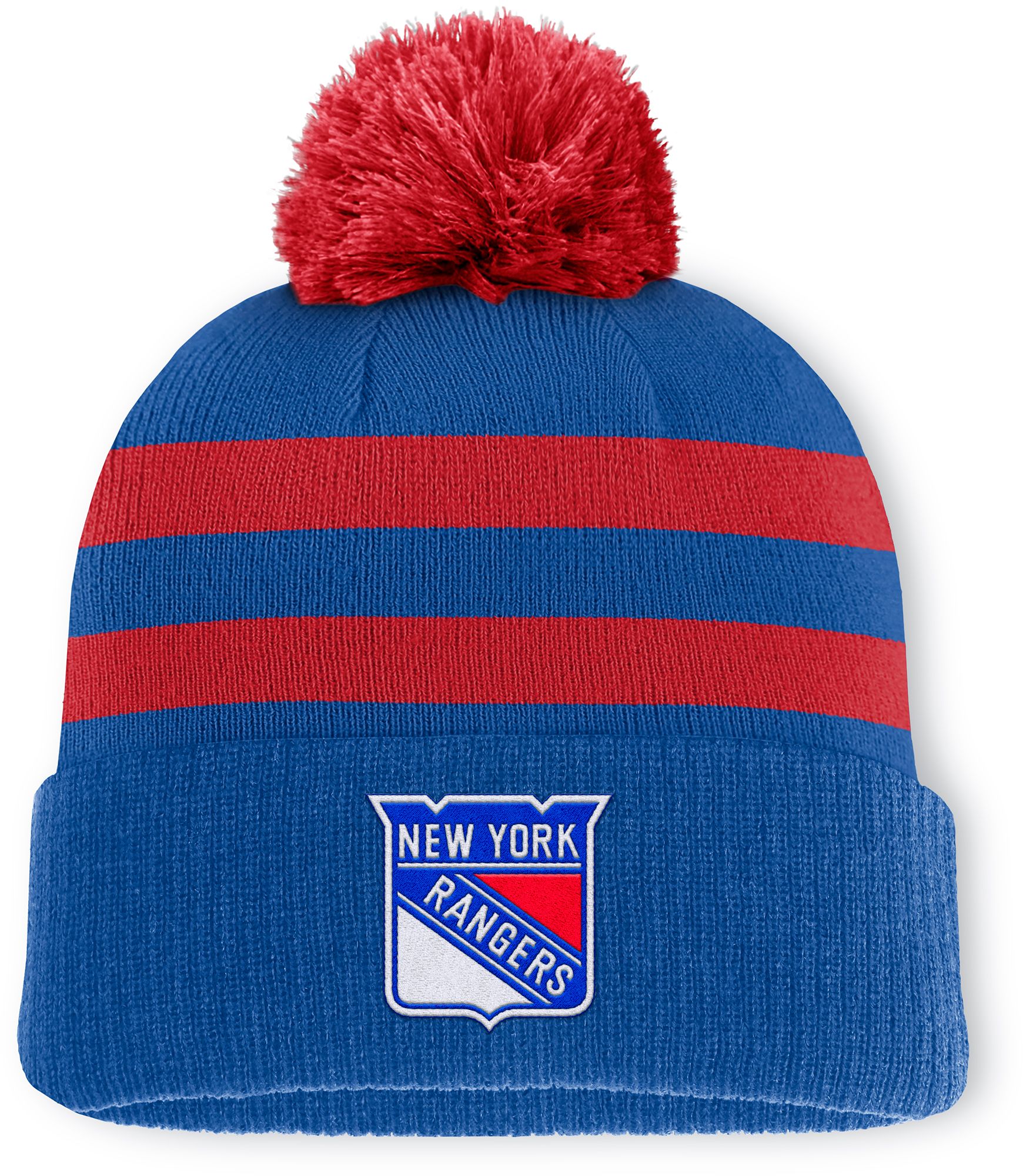 NHL Adult New York Rangers Blue Pom Knit Beanie