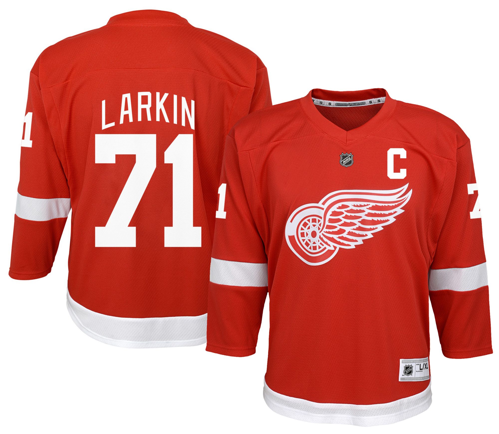 The NHL Boys' Detroit Red Wings Dylan Larkin #71 Red Home Replica Jersey is a fantastic choice for young fans who want to show their team pride in style. The iconic Red Wings red looks vibrant and authentic, and the overall design closely mirrors what the players wear on the ice. The Dylan Larkin name and #71 are crisp, well-applied, and instantly recognizable, making it perfect for game days, school spirit days, or watching from home. The jersey is made from lightweight, breathable material that’s comfortable enough for all-day wear, whether your child is cheering at Little Caesars Arena or playing street hockey with friends. It offers a relaxed fit that allows for easy layering over a hoodie or long-sleeve shirt, which is great for colder weather. Durable stitching and quality fabric help it hold up well through regular wear and washes. Overall, this replica jersey delivers great quality, comfort, and authentic team style at a reasonable price. It’s an excellent gift for any young Detroit Red Wings fan and a must-have piece for supporting Dylan Larkin and the Winged Wheel with pride.