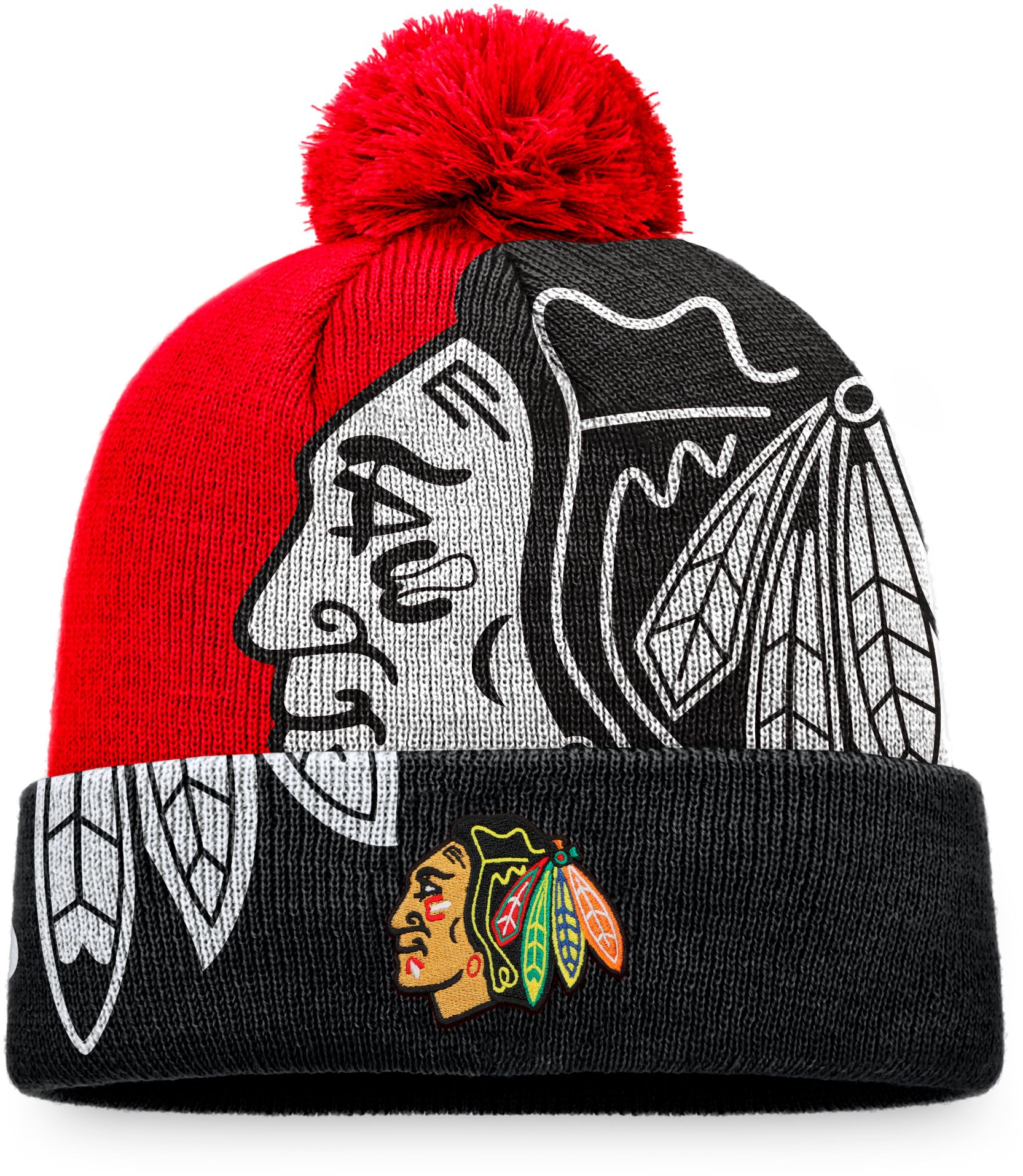 NHL Chicago Blackhawks Block Party Cuffed Pom Knit Beanie