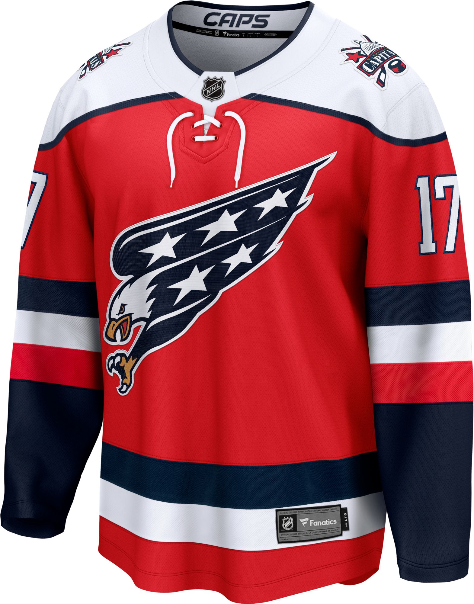 I was so excited when this came in the mail. This is probably one of my favorite jerseys the Capitals have come up with and being able to get one with Strome on it was all the better. It looks gorgeous and fits well. If you wanted a baggier look or want to be able to wear it comfortably over a sweatshirt or jacket I might recommend going up a size.