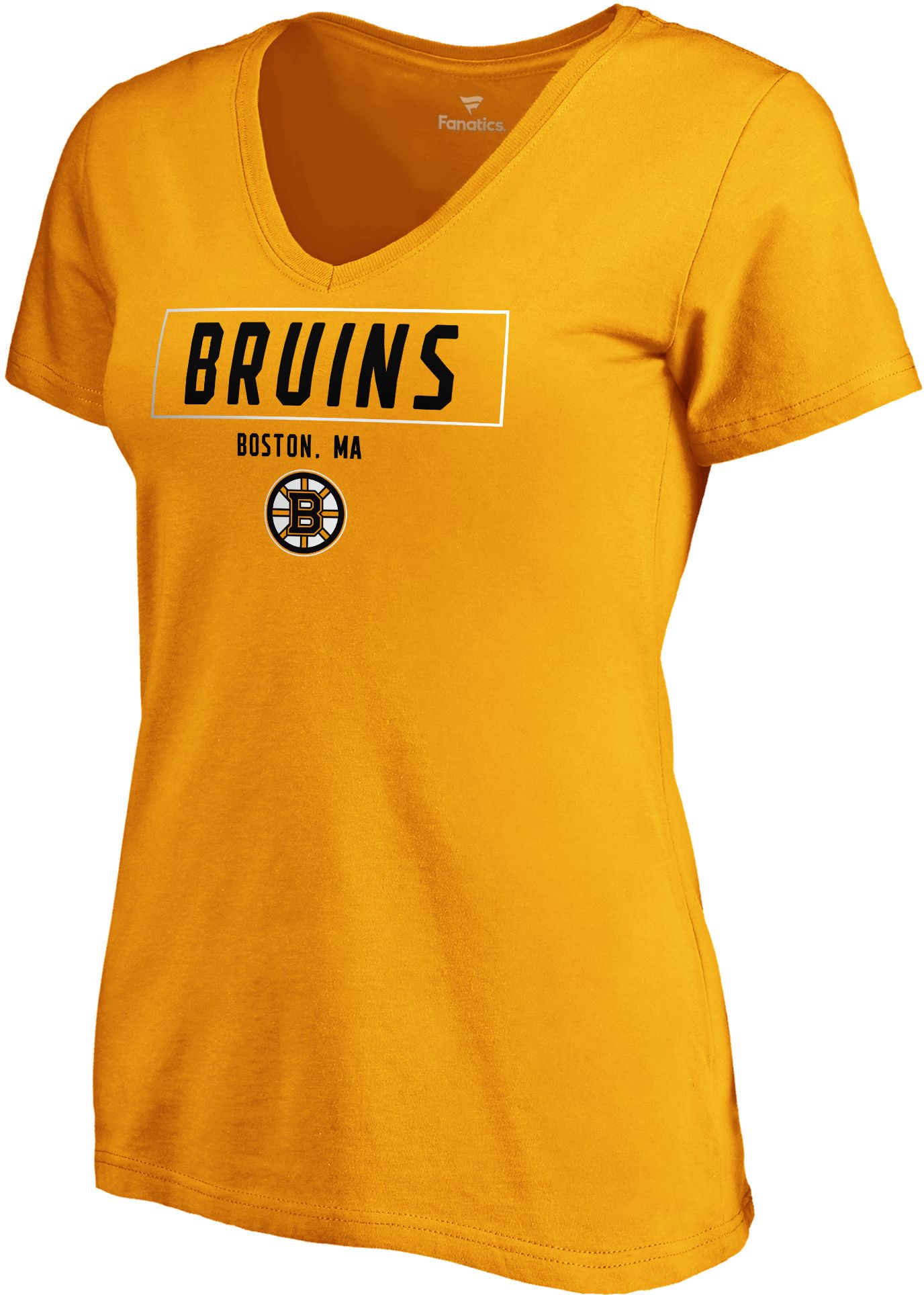 NHL Women's Boston Bruins Wordmark Gold V-Neck T-Shirt