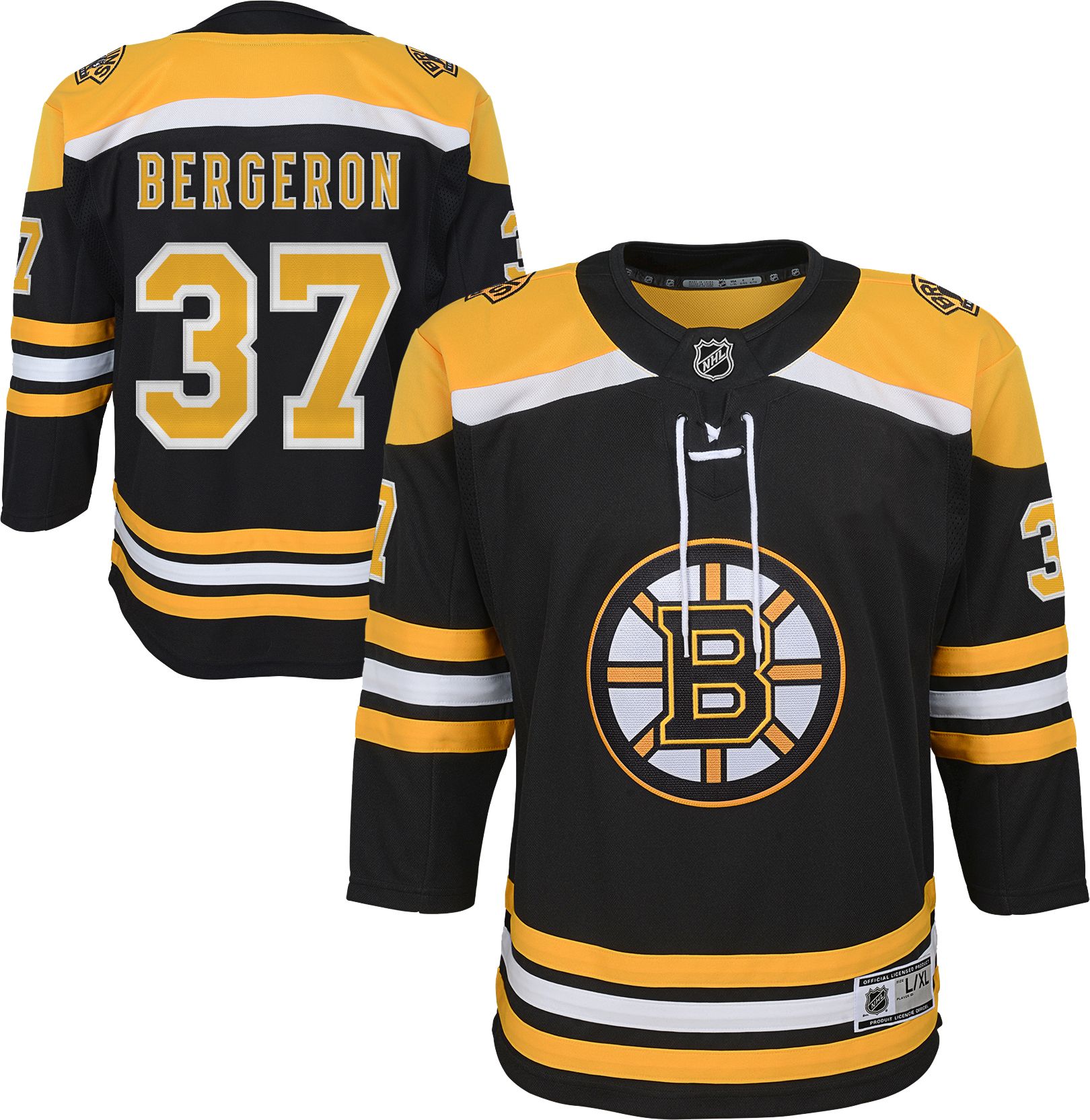 Your little hockey fan can look and feel just like their favorite player when they wear the NHL® Boston Bruins Patrice Bergeron #37 Premier Home Jersey.
