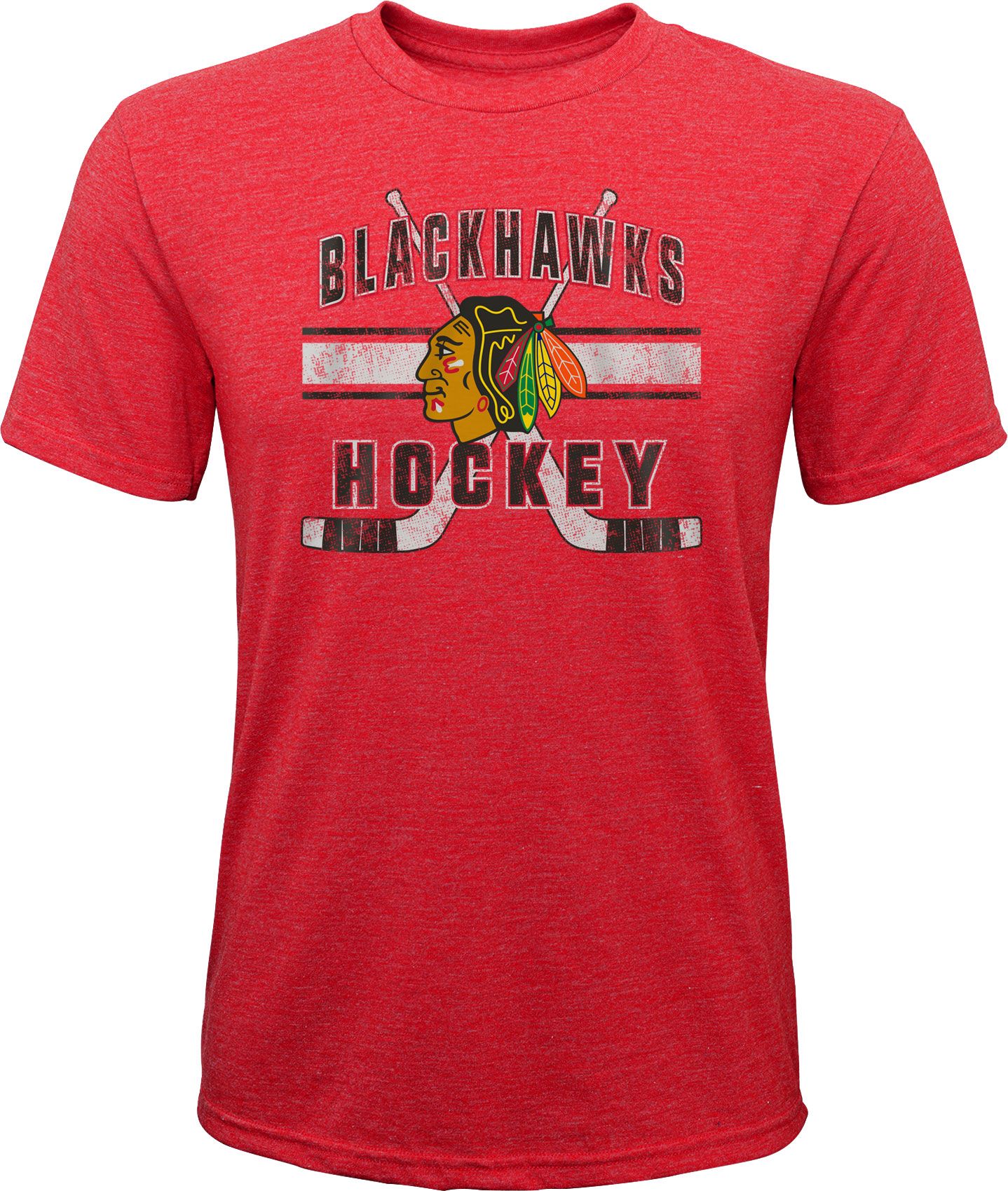 NHL Youth Chicago Blackhawks Stripe Tri-Blend Red T-Shirt