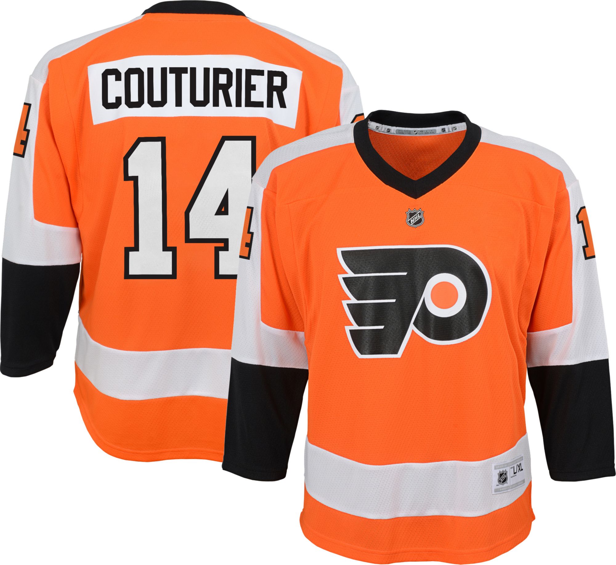Get your young fan geared up for the game in the NHL® Philadelphia Flyers Sean Couturier #14 Home Replica Jersey.