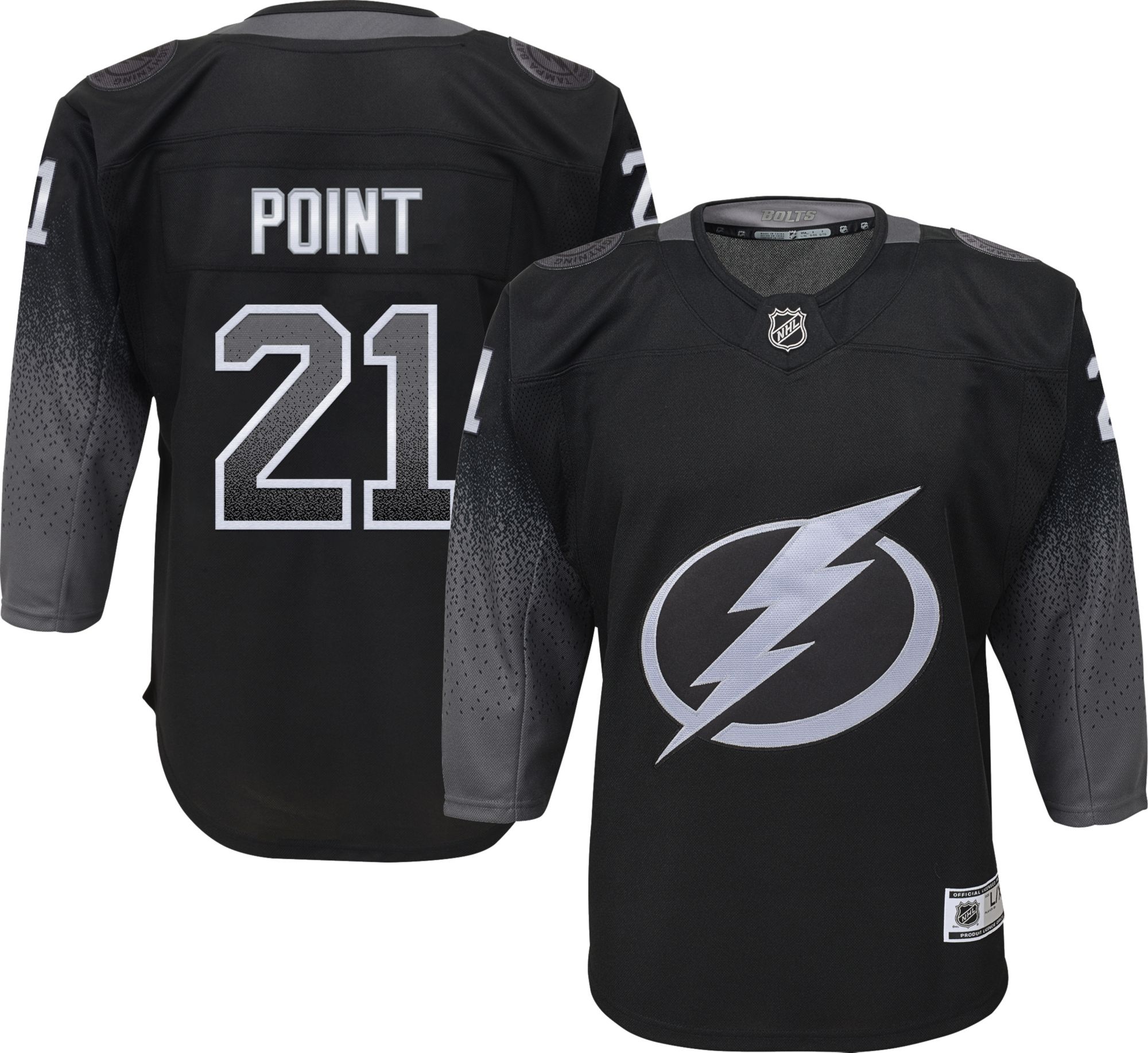 Your little hockey fan can look and feel just like their favorite player with a unique look in the NHL® Tampa Bay Lightning Brayden Point #21 Premier Alternate Jersey.