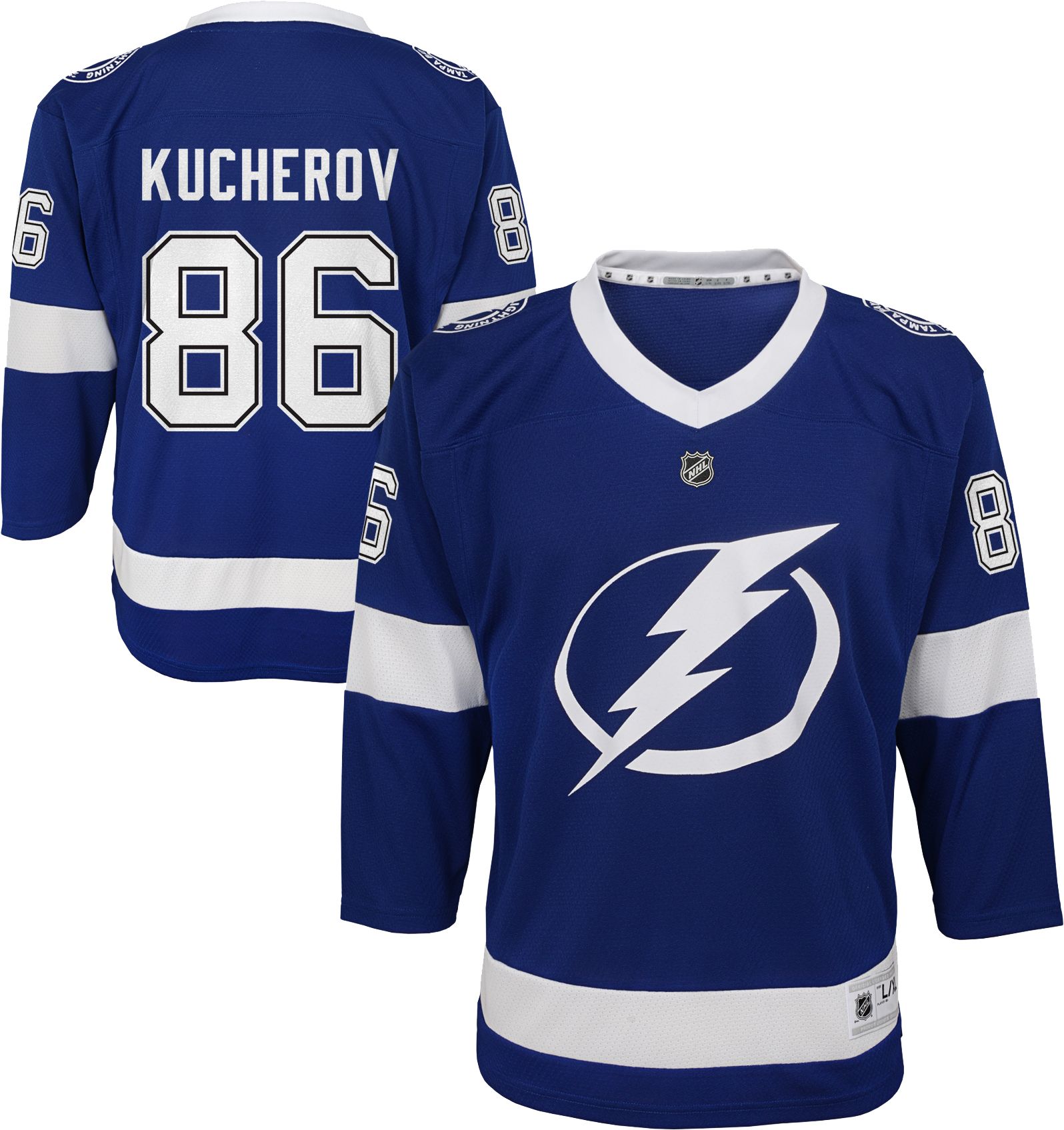 Get your young hockey fan geared up for game day in the Tampa Bay Lightning Nikita Kucherov #86 Replica Home Jersey.