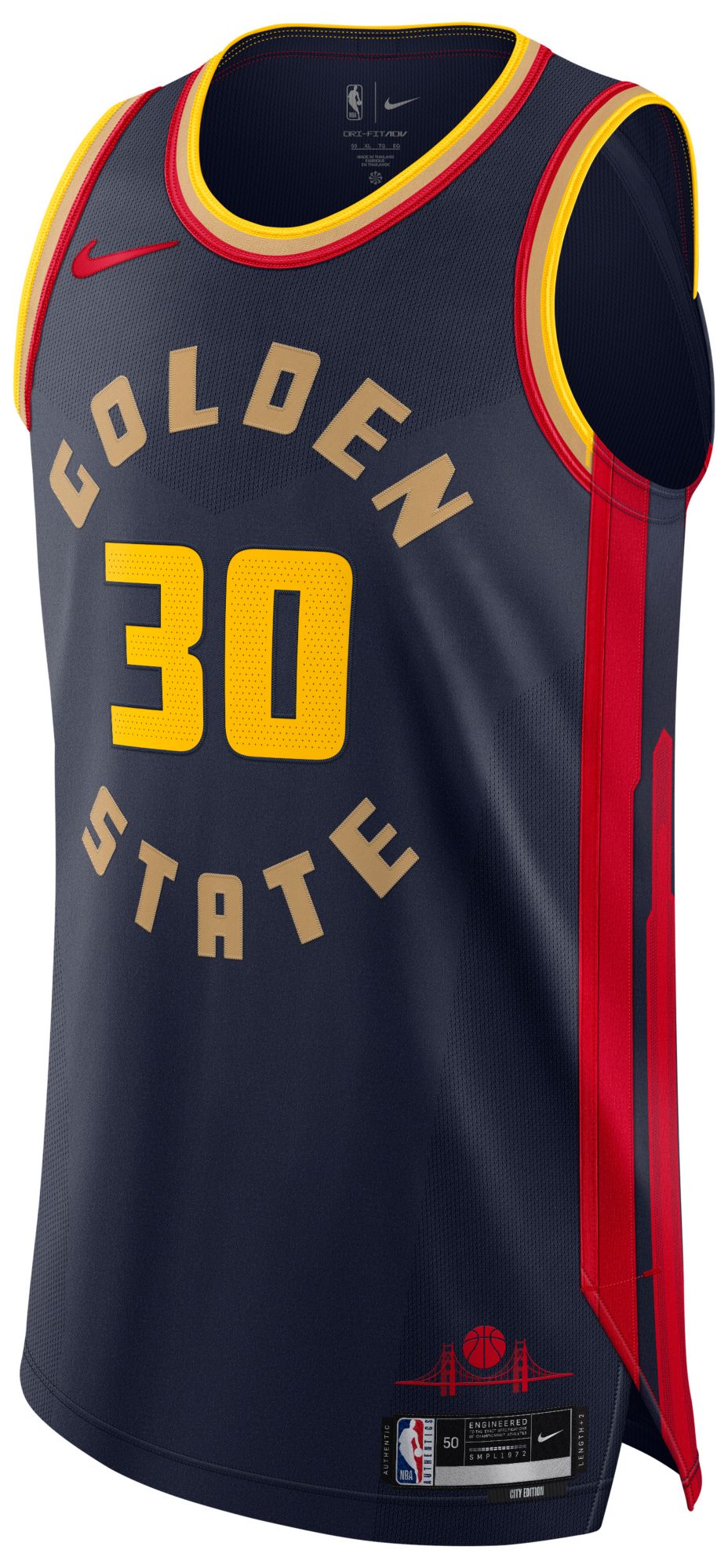 [This review was collected as part of a promotion.] I'm not usually a huge jersey fan, but when I do pick one up, I'm a bit more picky with what I snag, and this one checks all the boxes to make the final cut. It may not be super bright or flashy, but it's subtle look and colors make it a great center piece for a casual sport look with almost any color pallet to compliment it. The fabric is the classic dri-fit feel you'd expect from your athletic wear. Comfortable, breathable, and very functional if you are going to rock this to the gym or a quick game of pick up. If I had the choice, I'd honestly have my entire outfit head to toe be dri-fit material, because it just feels right. It's a classic stylish fit, a little extra length so you can wear it loose or tuck it in if you're on the court, great for us taller people. The design and colors are simple, but in a good way. It does an amazing job of reflecting the team heritage, as well as the city where it's from. Golden State speaks for itself, and so does this jersey. I like how I can rock it with a hoodie or long sleeve in the winter, but it's not too big or baggie to rock it like a classic jersey on or off the court as well, well designed for an athletic build. The fabric speaks for itself, if you've ever owned dri-fit material, you know what you get. The fact that the fibers that make this are sourced from recycled plastic bottles is just incredible as well, and you feel good about wearing something that's actually helping the planet at the same time. Can't compliment the soft breathable material enough, moisture wicking to keep you cool and dry all day, how can you go wrong with that? Honestly. the only thing I think I'd change is maybe just pick a more artistic logo for the graphic, but the jersey itself is spot on and superb in every way. I don't think I've owned a better feeling jersey when it comes to quality and comfort. A+ in my book, and I'll be sure to stock up on more when I can afford it.