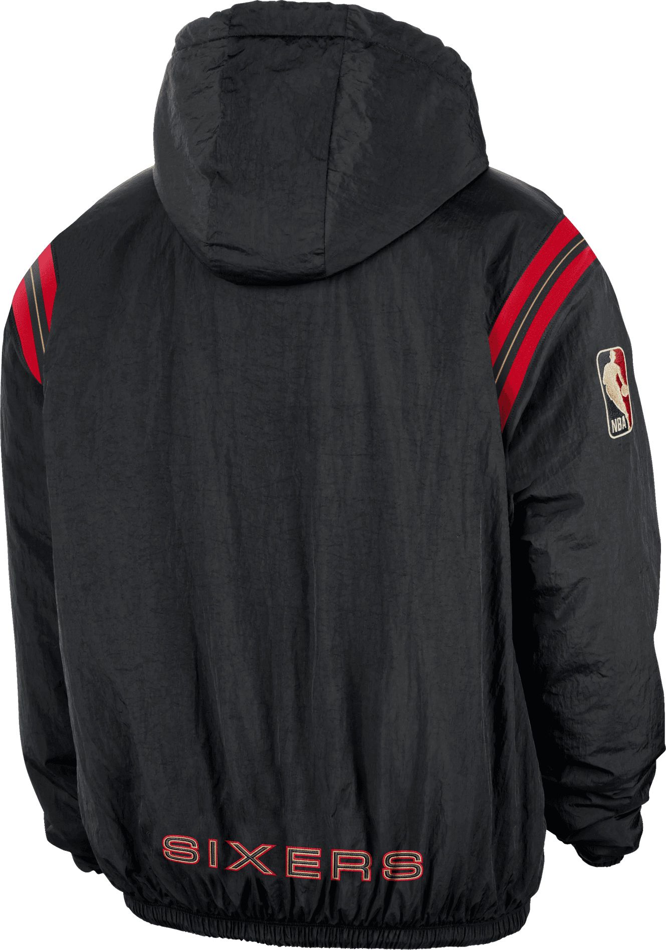 Nike Men's Philadelphia 76ers Black Hardwood Classics Wordmark Therma-FIT Woven Half-Zip Hoodie