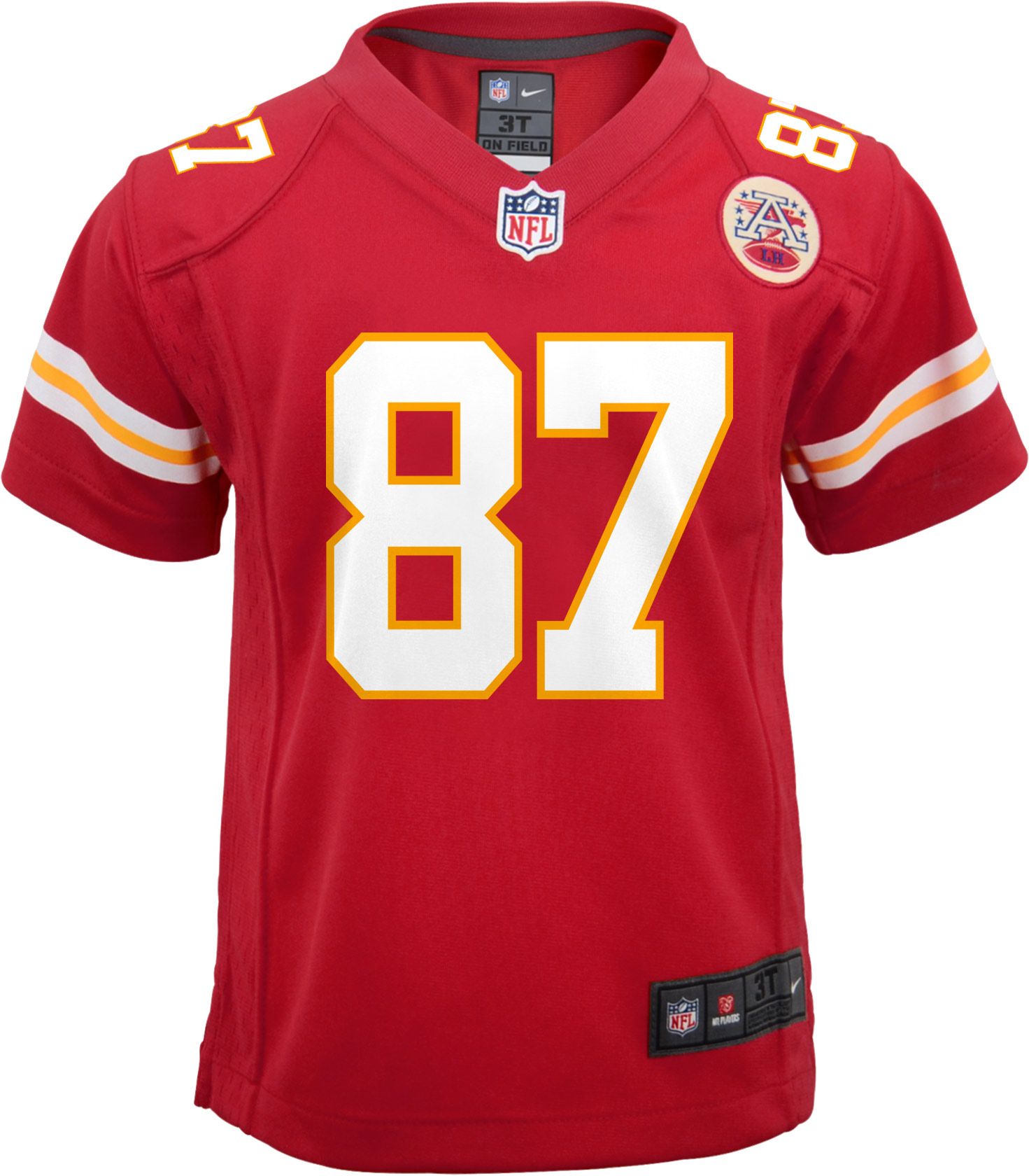 Let your youngster cheer on their favorite Chiefs star with the Nike® Kansas City Chiefs Travis Kelce #87 Home Game Jersey.
