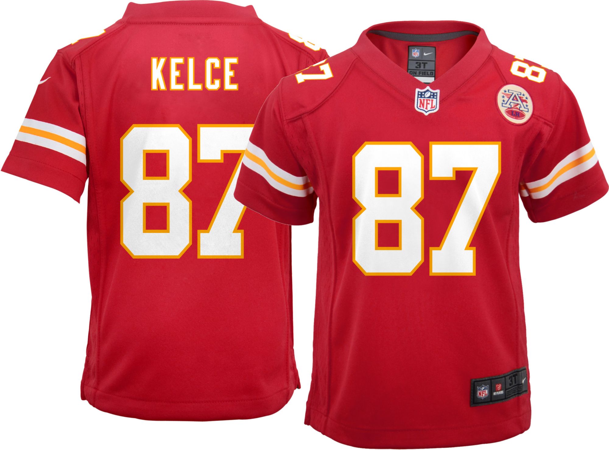 Let your youngster cheer on their favorite Chiefs star with the Nike® Kansas City Chiefs Travis Kelce #87 Home Game Jersey.