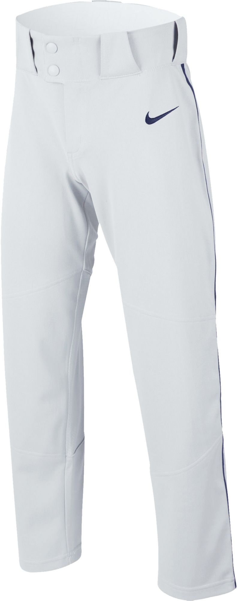 Outfitted with sweat-wicking technology and breathable mesh, the Nike® Boys' Vapor Select Piped Baseball Pants help manage distractions on the field to keep you at the top of your game each inning. These pants are designed for a relaxed, easy-fit that allow you to move more freely, and its side-seam piping gives you that extra pop of color to match your team uniform.