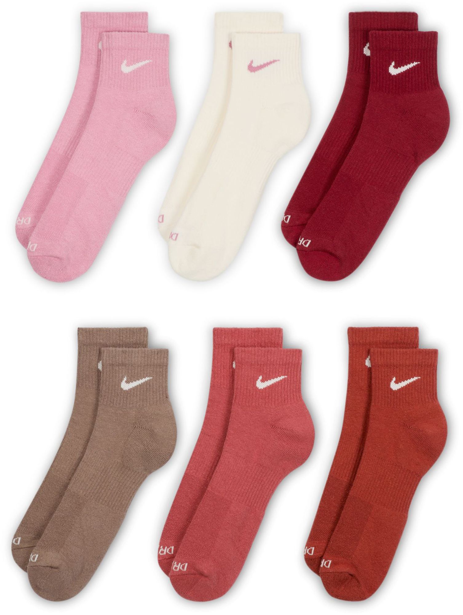 The Nike Everyday Plus Cushioned Socks bring comfort to your workout with extra cushioning under the heel and forefoot and a snug, supportive arch band. Sweat-wicking power and breathability up top help keep your feet dry and cool to help push you through that extra set.