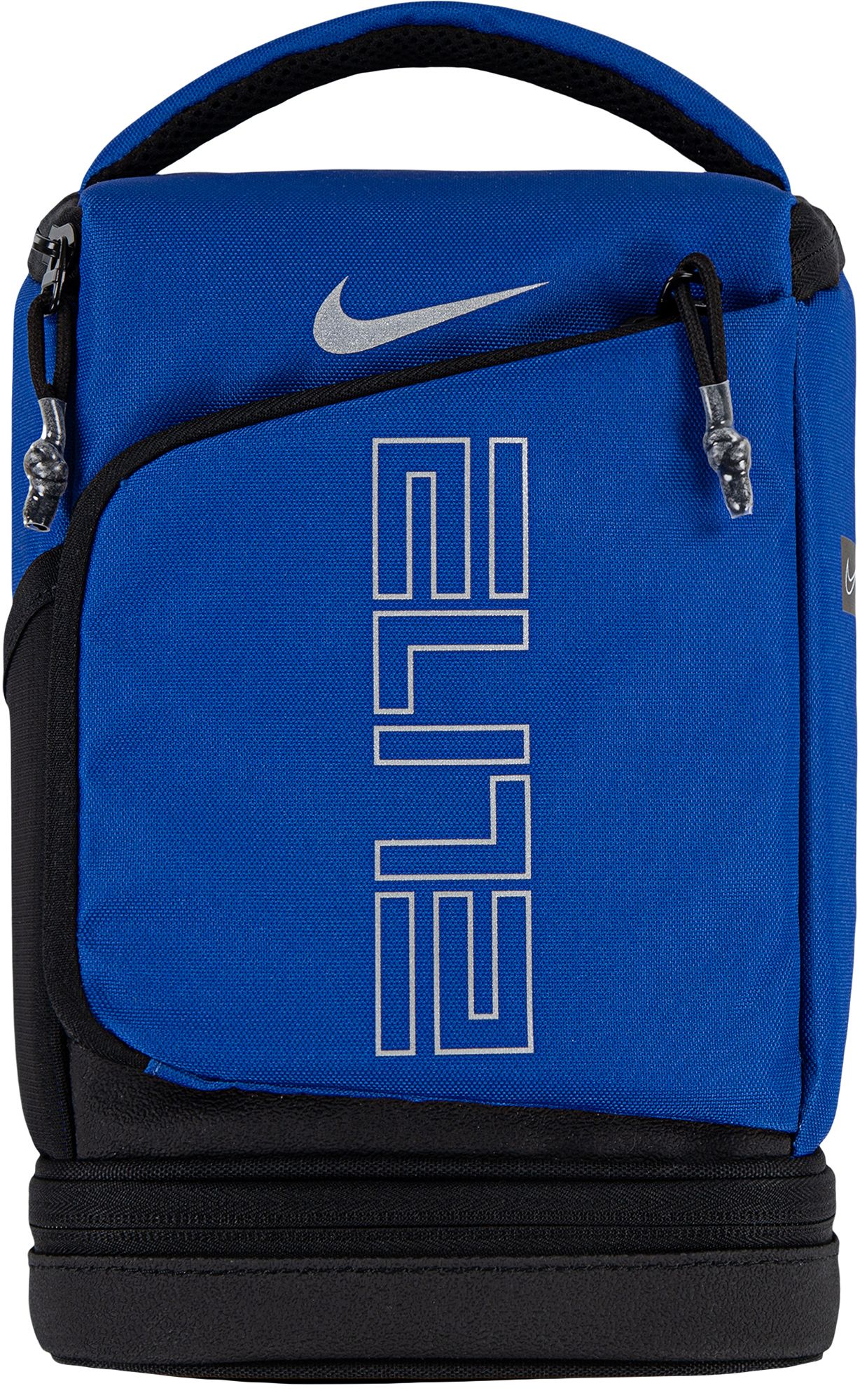 The Nike Elite Fuel Pack Lunch Bag has 2 insulated food compartments in the main body, and the bottom panel separates hot and cold items. The sturdy design is easy to carry.