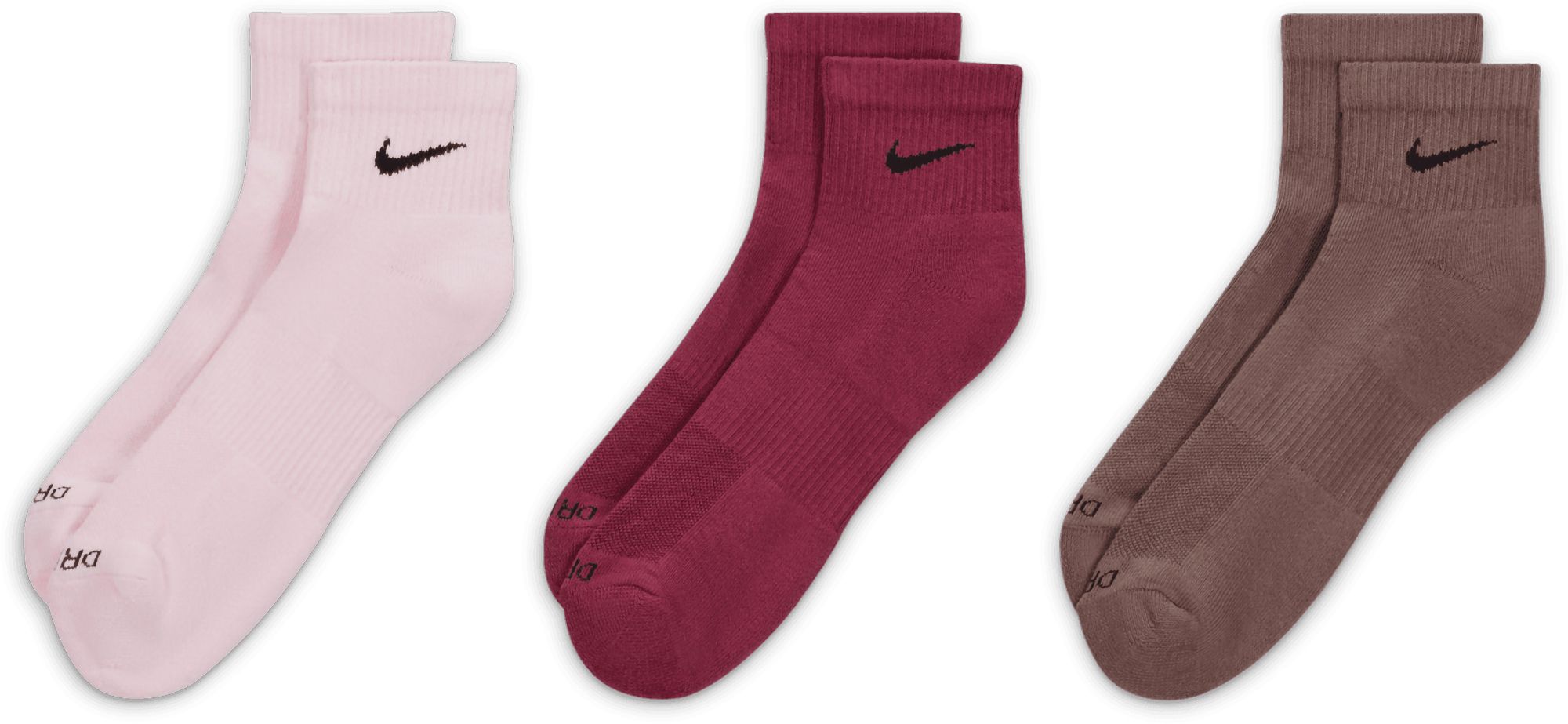Put your best foot forward with the Nike® Everyday Plus Cushion Ankle Training Socks 3-Pack. Featuring sweat-wicking Dri-FIT technology in a 1/4-length silhouette for a comfortable fit around the ankle and an arch band contours around the foot for a locked in fit.