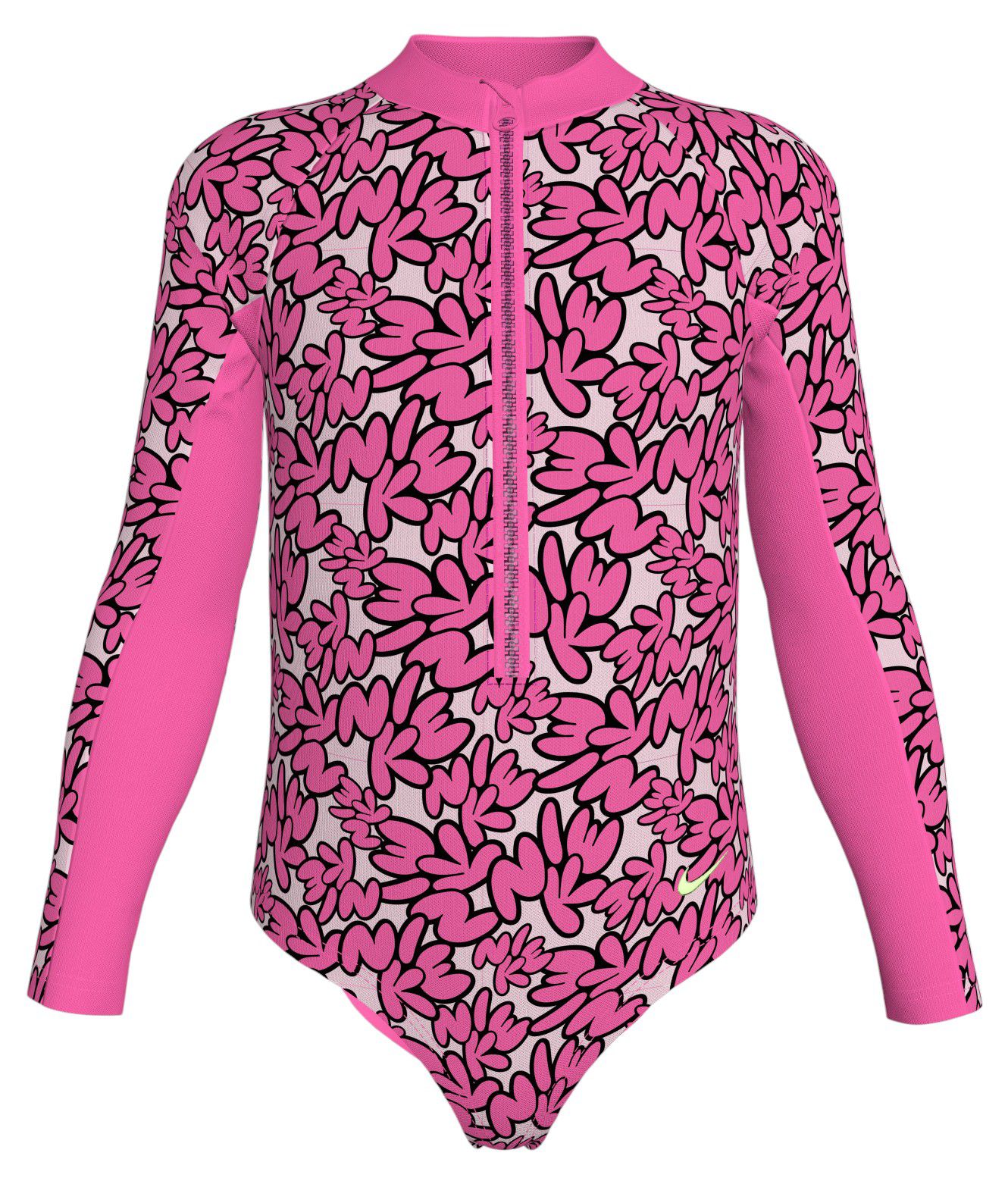 Keeping it fun season after season, this long-sleeve swimsuit has a bold bubble script print. A zippered front makes it easy to get in and out of this high-coverage suit that will keep your little one comfortable and out of the rays all day long.