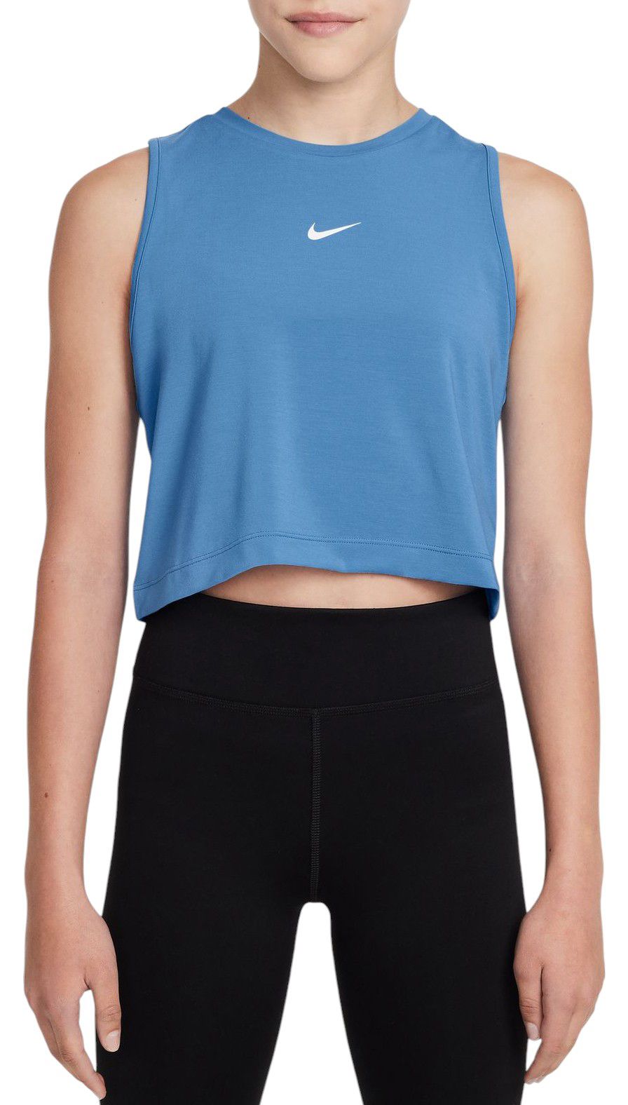 The Nike Girls’ Pro Dri-FIT Training Tank Top offers a cropped silhouette that pairs perfectly with high-waisted Nike Pro shorts or leggings, and a high neckline for extra coverage. Crafted from soft and smooth fabric with just the right amount of stretch, this sleeveless top keeps you comfortable during any workout. Plus, the Nike Dri-FIT technology ensures you stay dry by moving sweat away from your skin for quicker evaporation.