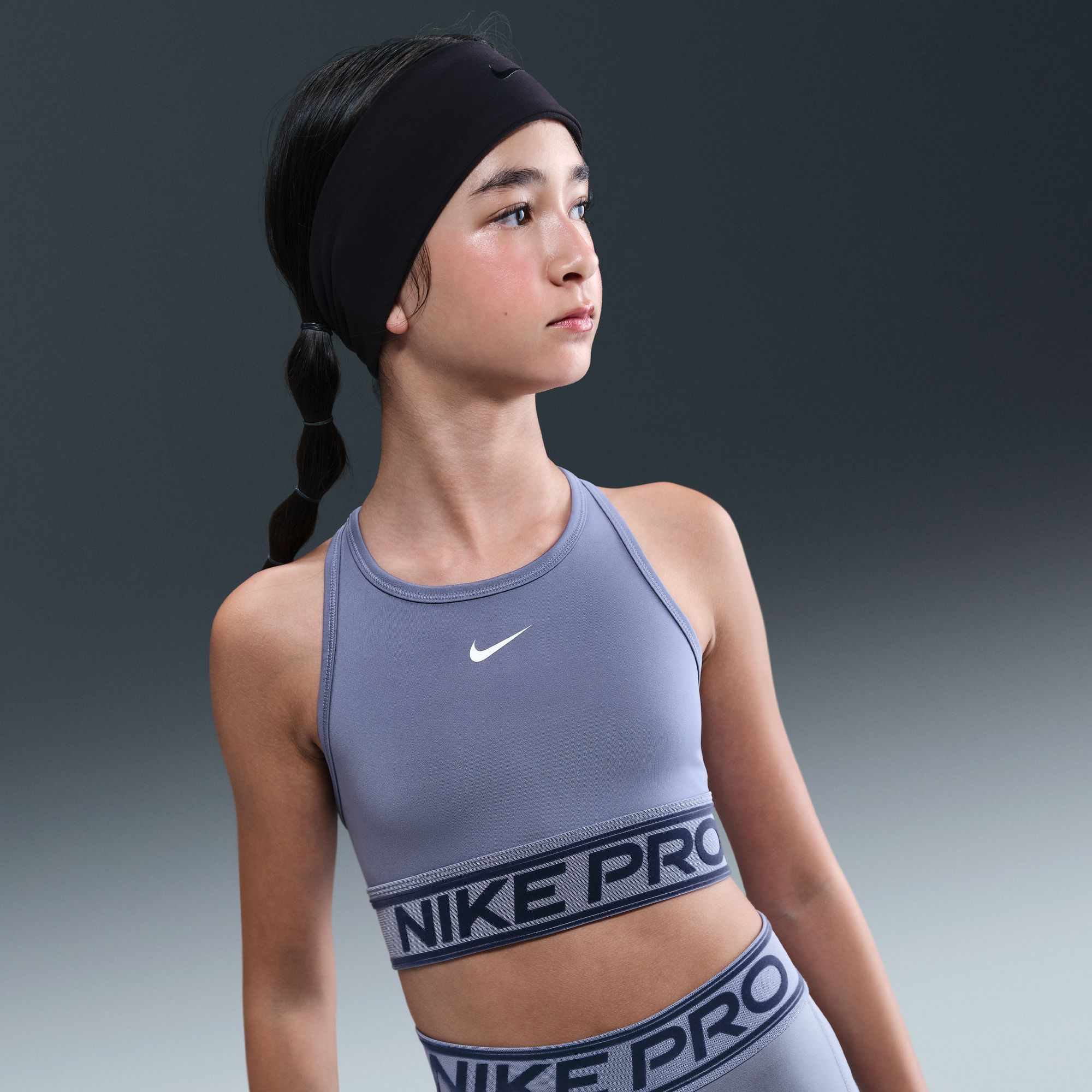 With a fit that feels compressive and held in, our Swoosh Bra is perfect for high-impact activities. Its smooth, stretchy fabric dries up sweat to help you stay focused. A flocked chest band adds softness while a striped mesh back panel adds airflow.