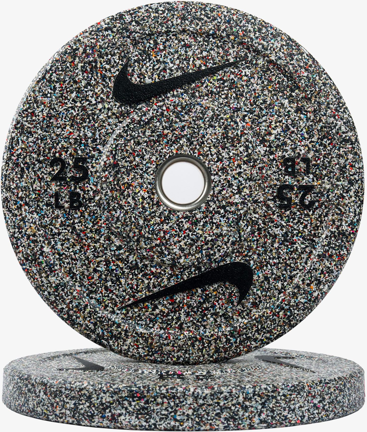 Bumper plates are crafted from Nike Grind rubber, a byproduct of Nike's footwear manufacturing process. Depending on the weight, each plate is made with between 35-66% of Nike Grind rubber. Because footwear color palettes vary from season to season, each batch of Nike Grind rubber is unique and yields a limited edition run of these plates as they're released. These versatile plates will become your go-to for Olympic lifts, powerlifting, bodybuilding, and functional training. Get grinding rep after rep! JUST DO IT.