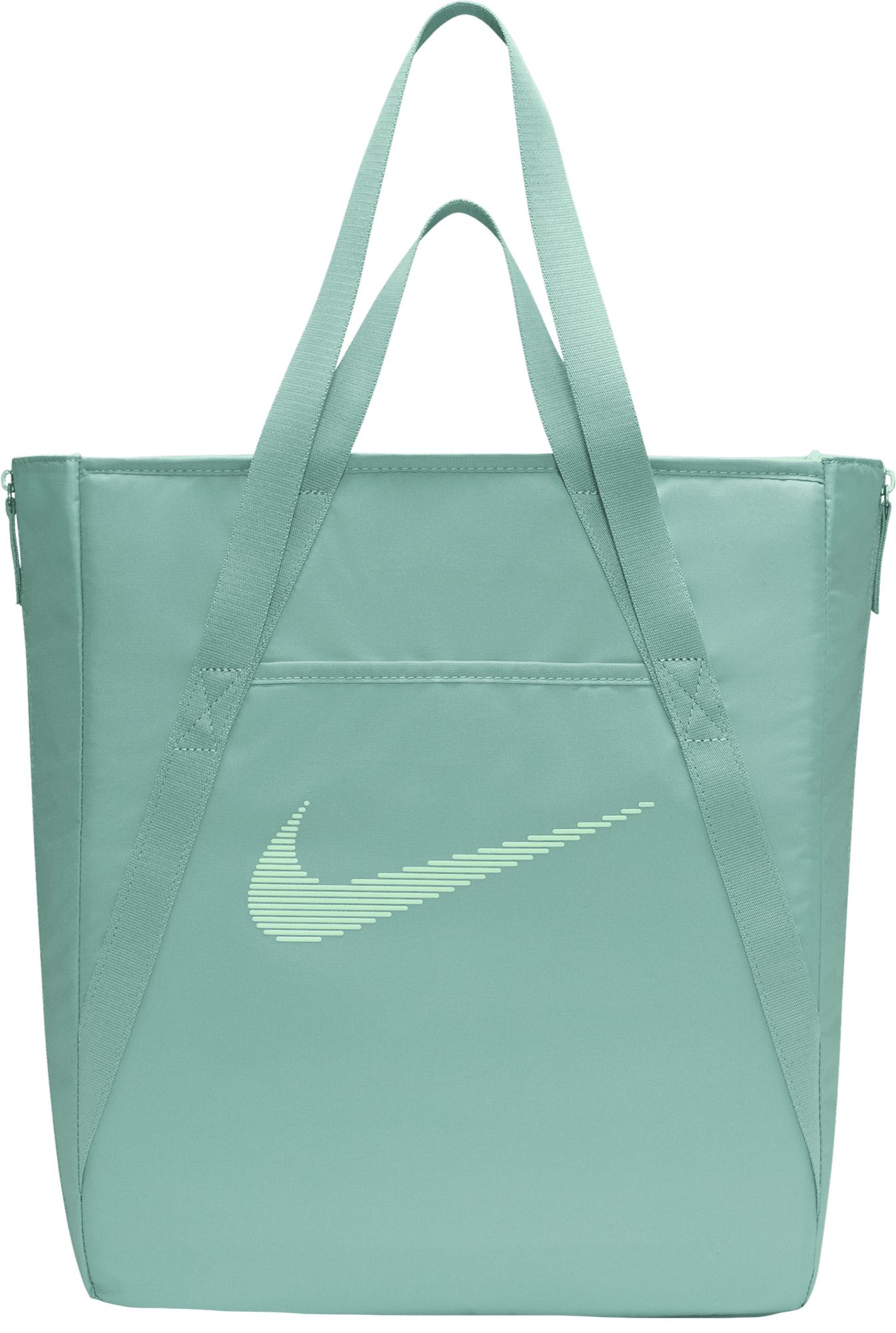 This tote bag is as multidimensional as you are. No matter what your fitness journey is, the Nike Gym Tote is made to handle it. Multiple deep pockets line the inside of this bag, both open and zippered for extra security. The front and back features pockets for the small things you want easy access to. And, the size of this tote is deceptive—the sides feature expanding fabric panels for extra space whenever you need it.