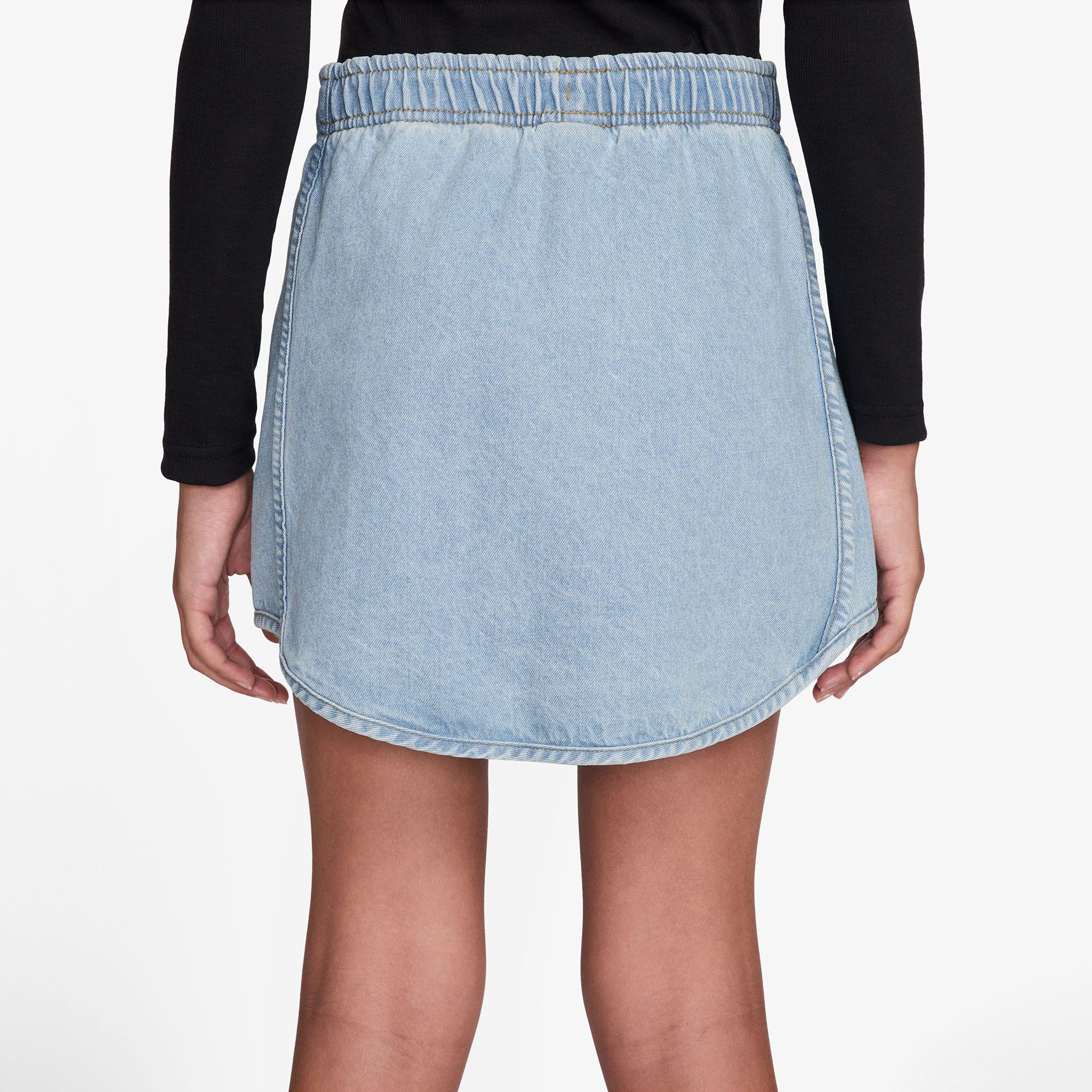 Denim, denim, denim. You can never have enough denim. This two-tone denim skirt has an elastic waist and drawcord for an easy on and customizable fit. Plus, it's got pockets.